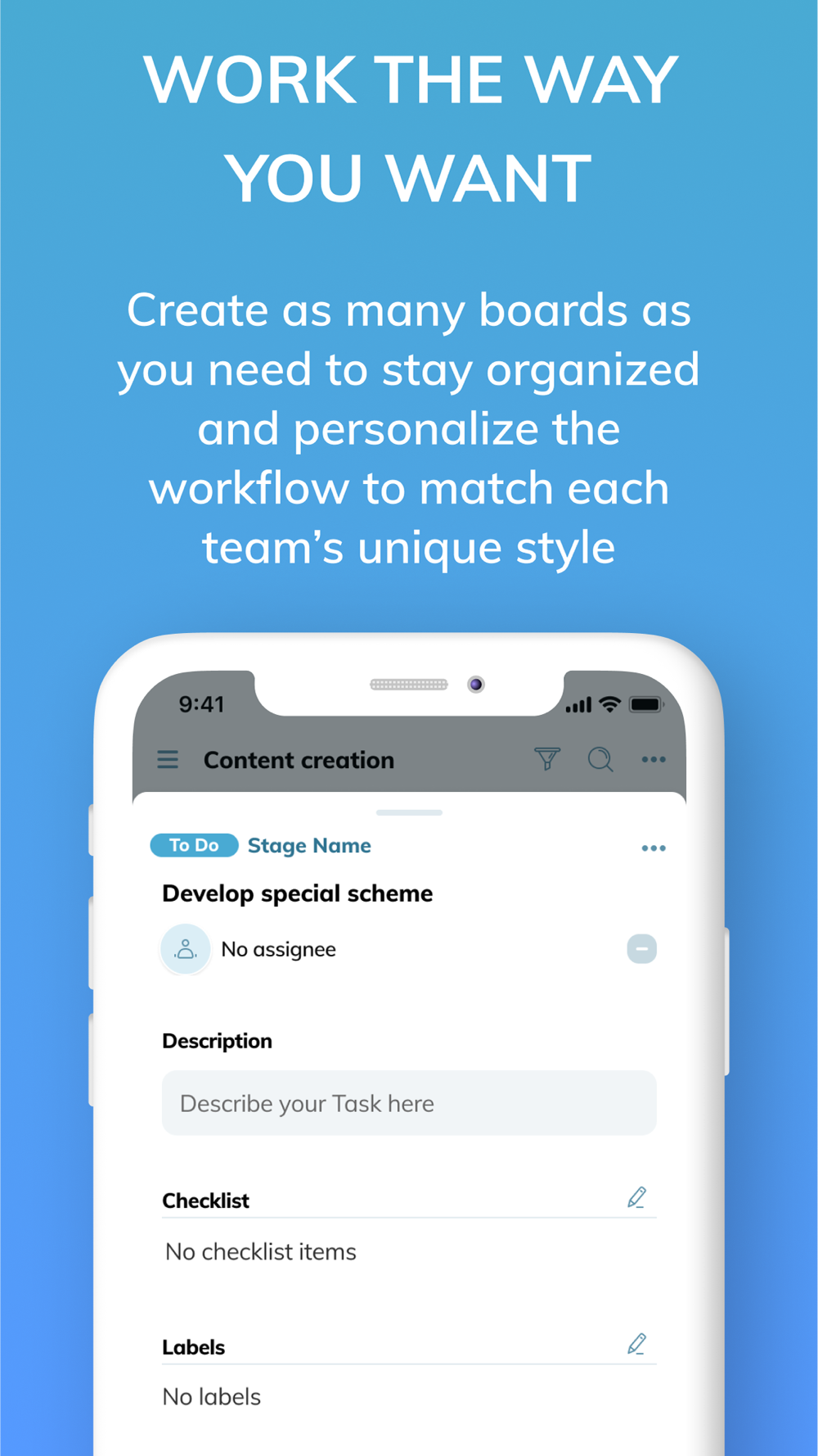 Add as many workspaces and boards as you want, and personalize them to match each team’s unique workflow.