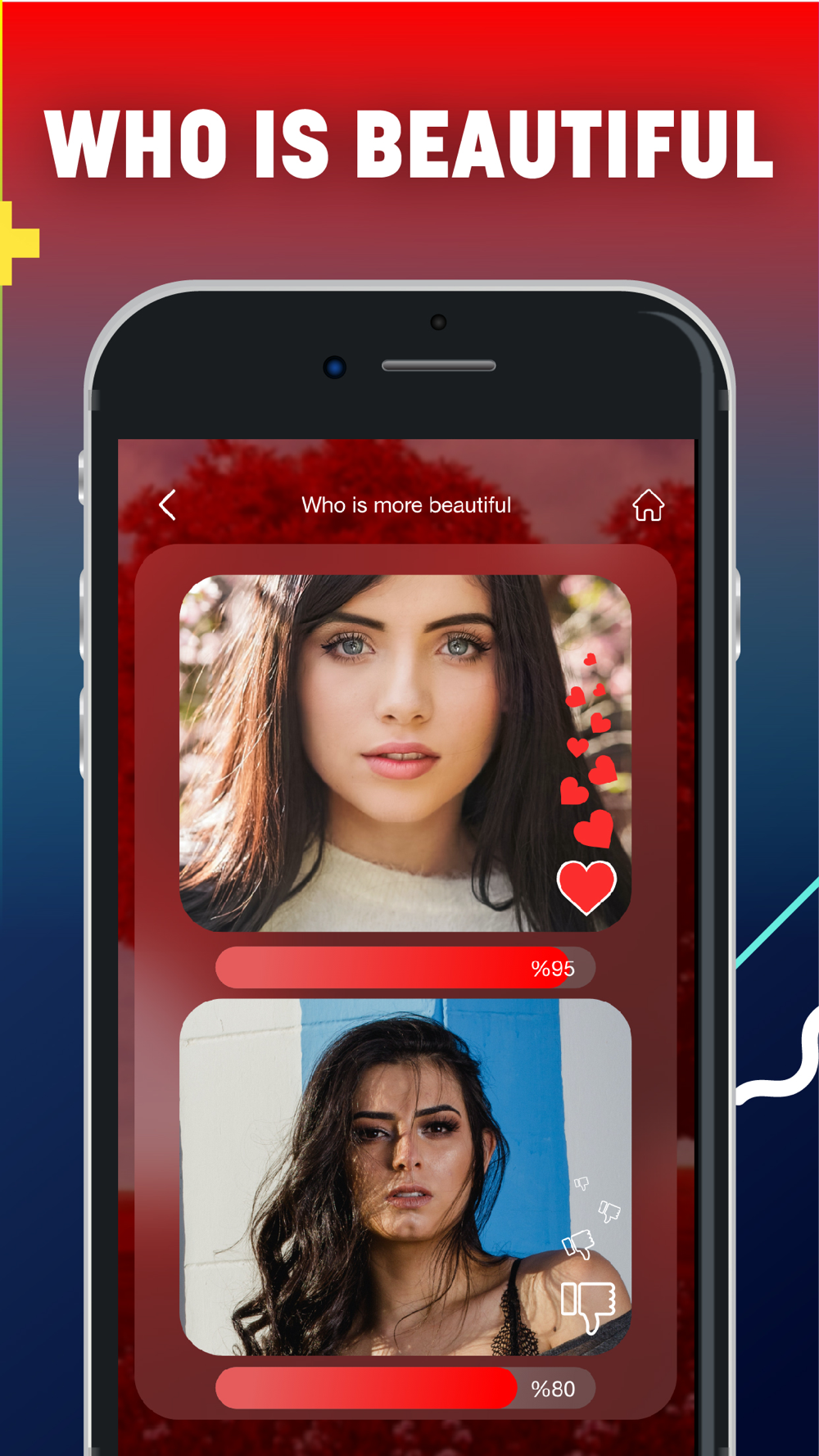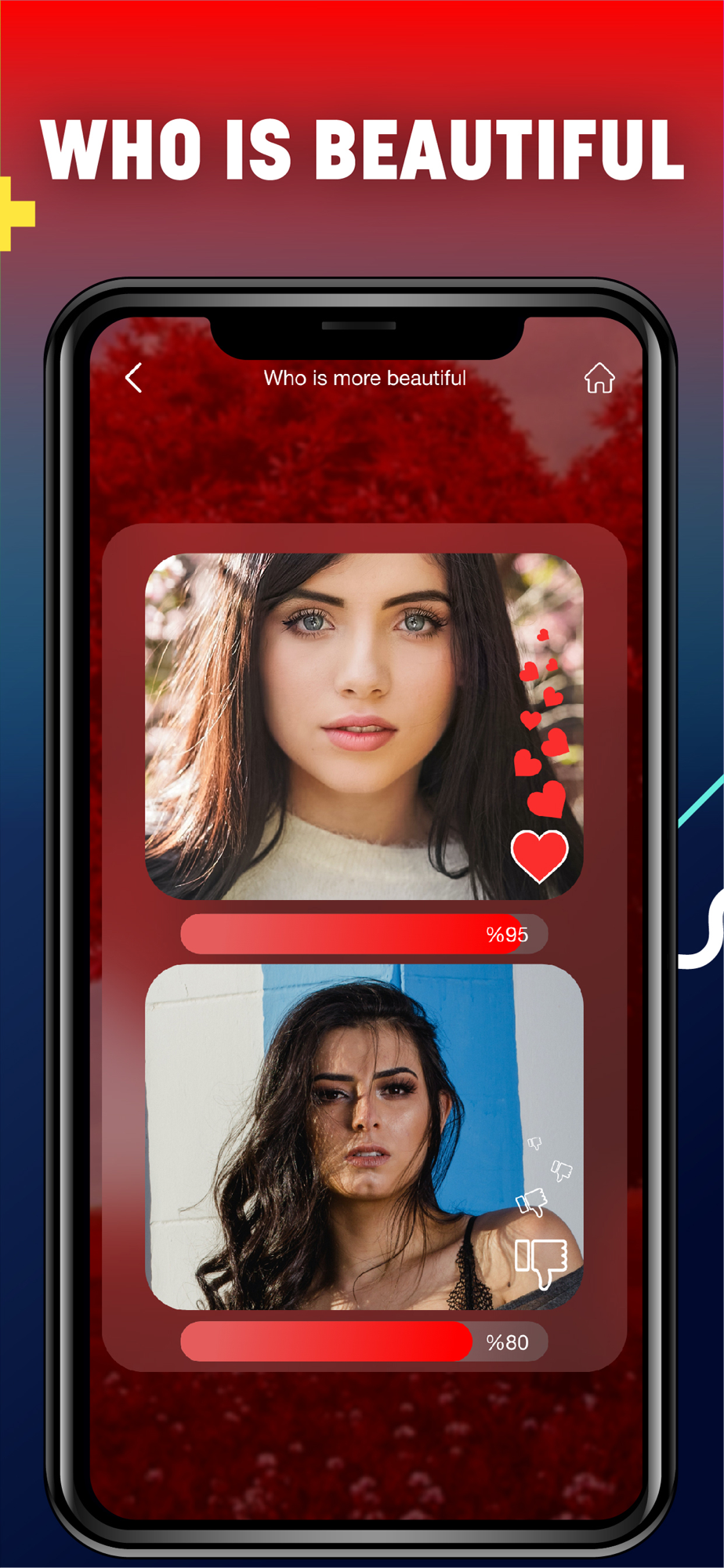 We present a beauty contest showing which of the two photos is more beautiful. Upload a photo of yourself and your friend, let's guess who's more beautiful. Let's see who wins!