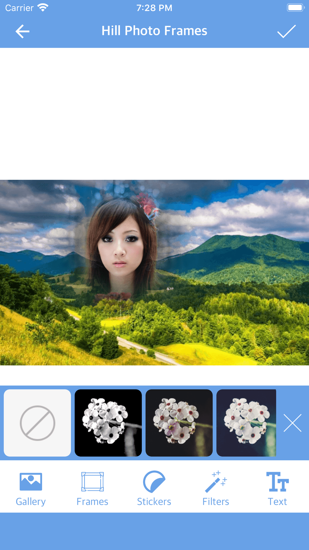 ► Select Photo Frame (Waterfall, Village, Street, Nature, Love, Christmas Frame, and many more.)