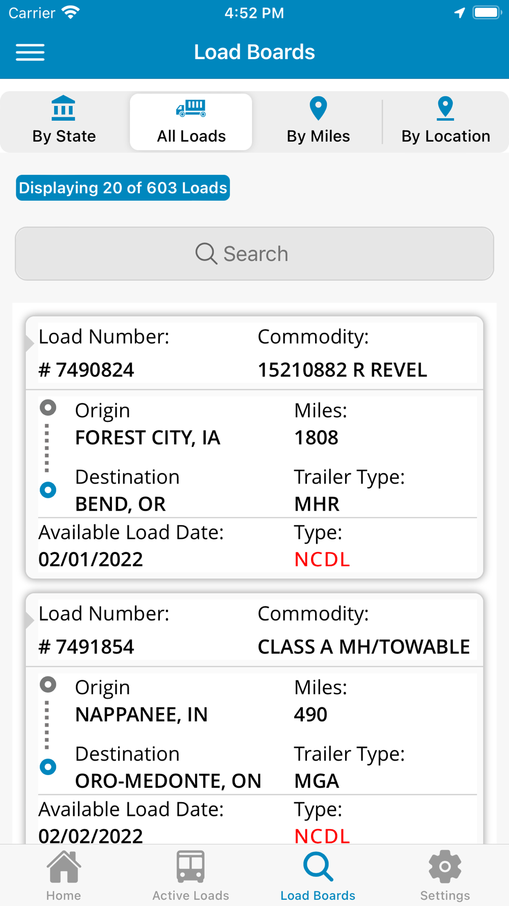 1. Remove LTL request2. Allow users to select multiple states when doing load board search3. Add number of loads with surrounding states buttons.4. The system should save last equipment choice on loadboard search