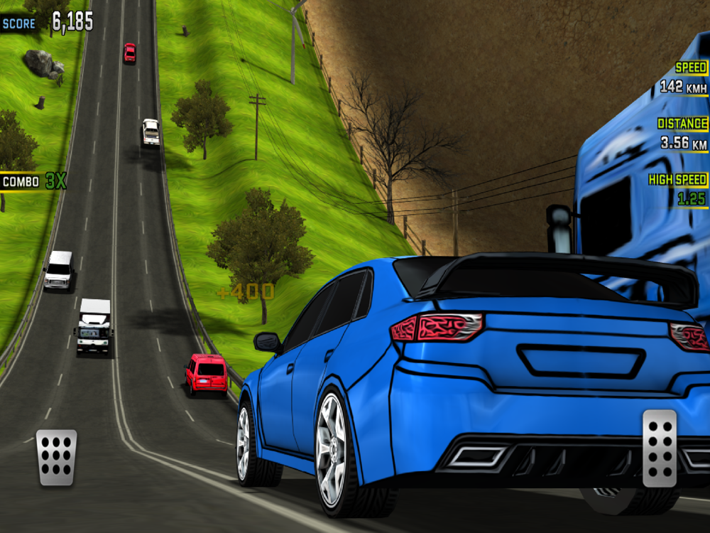 - Overtake traffic cars closely at high speeds for cash bonuses