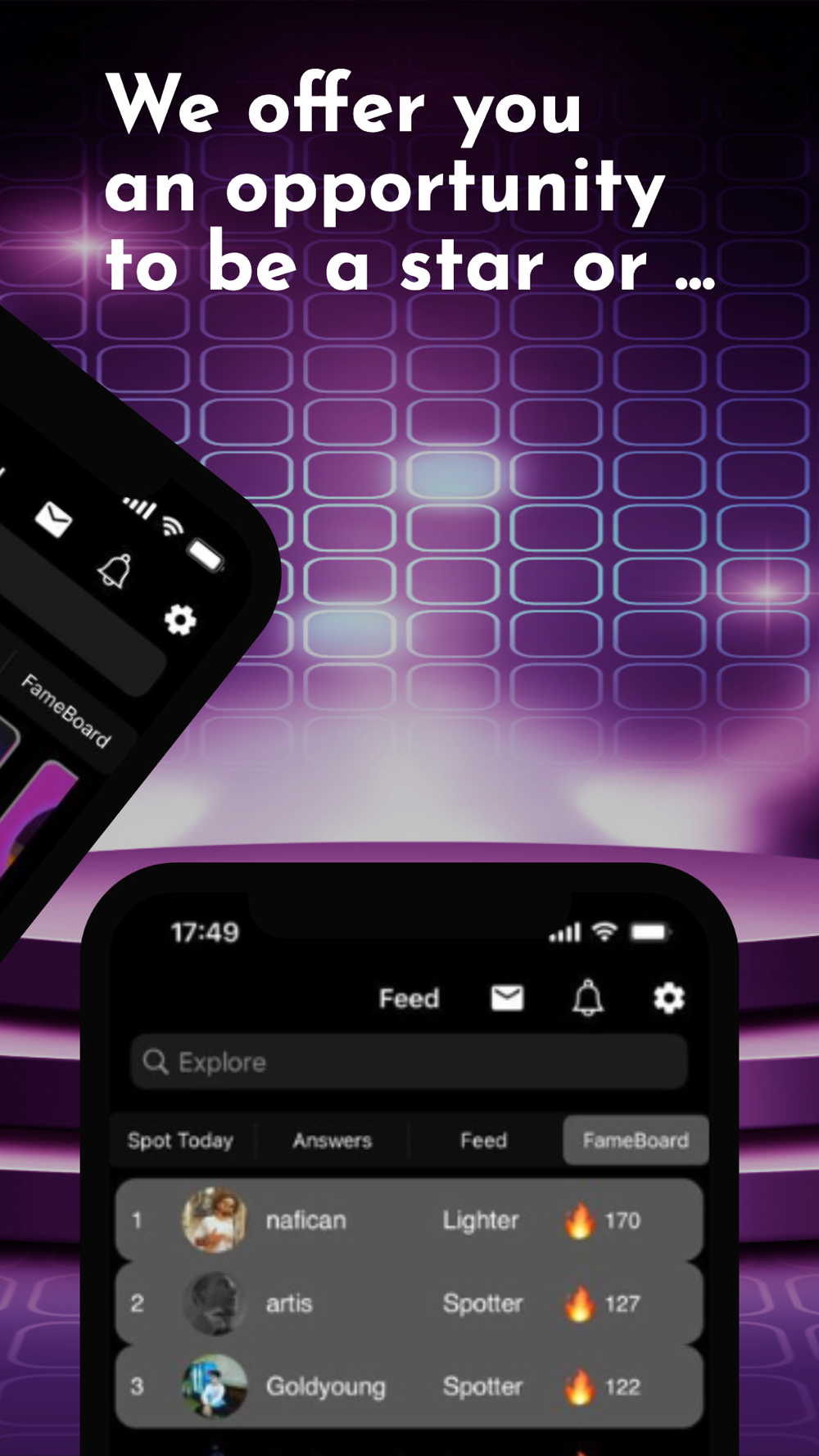 Spotlighter app is only the start point of the big journey. We have challenges started by celebs and brands. You can attend or start new challenges to get the votes of other users to climb higher levels and then you can attract the brands and experienced celebrities. Then the rest is on us, we are arranging the whole career path.