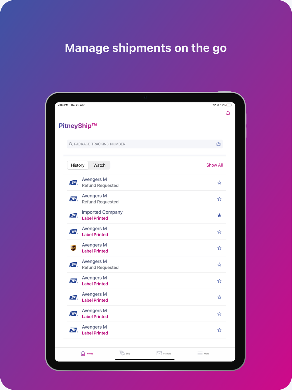 Rate shop across shipping carriers, create a shipping label, and track packages anytime, anywhere using your mobile device or tablet with The PitneyShip App