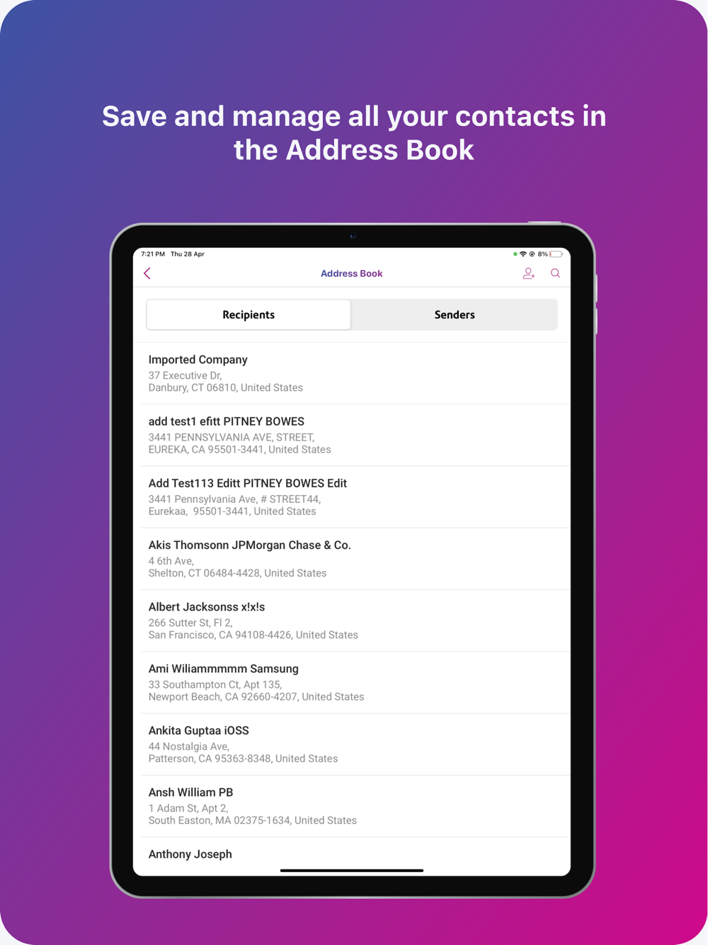 o Save recipient contacts in your address book for future shipments