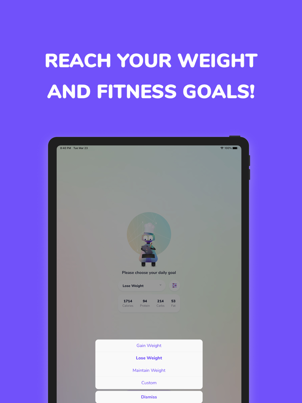 You can select between Losing Fat, Maintaining Weight, or Gaining Muscle. We use the industry standard formulas to set your daily macros based on your weight goals.