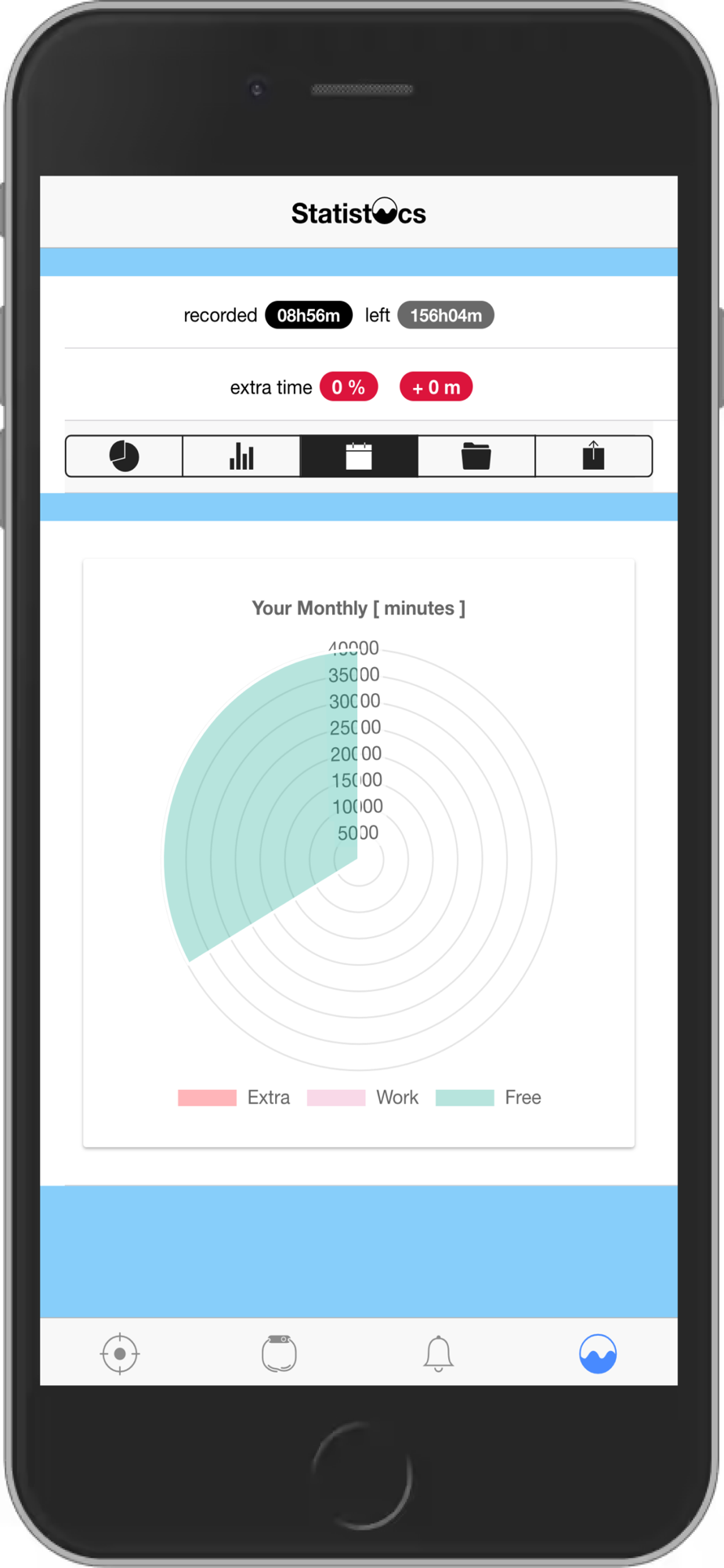 Statistics : Computed extra time, time spent at work per day & month, previous months ...