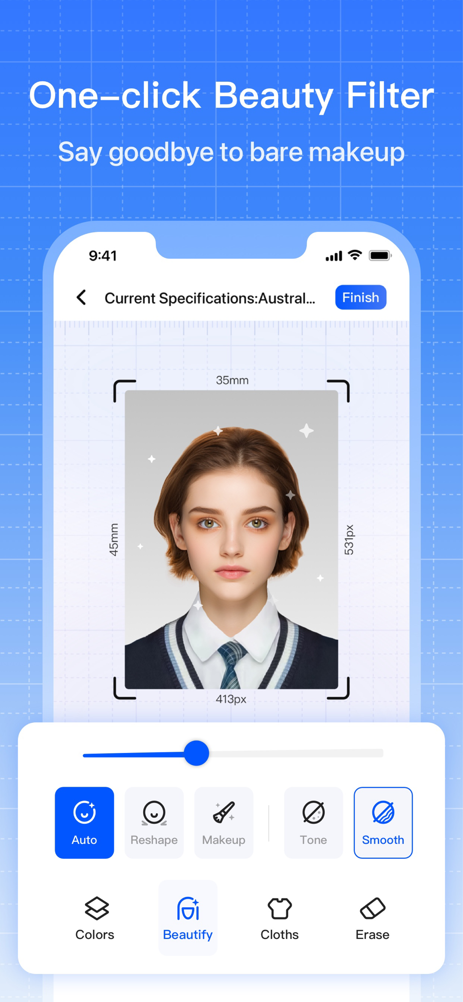 ◆One-click beautification and photo retouching: Supports one-click beautification, whitening, skin resurfacing, and face slimming. Say goodbye to handicapped people and take beautiful ID photos.