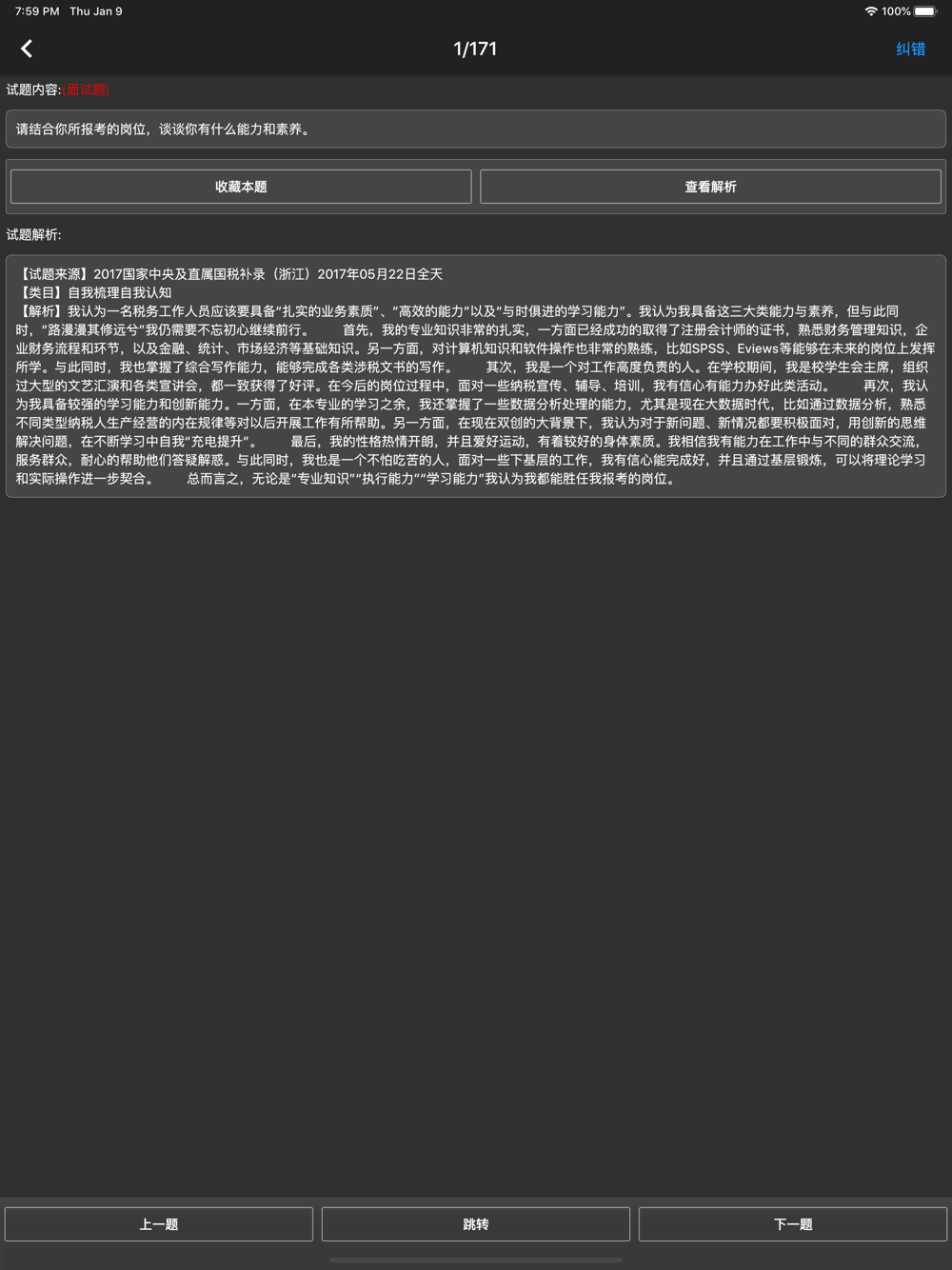 本软件为准备事业单位招考,军转考试,公务员考试等而精选的近5000多道公务员面试题,具有: