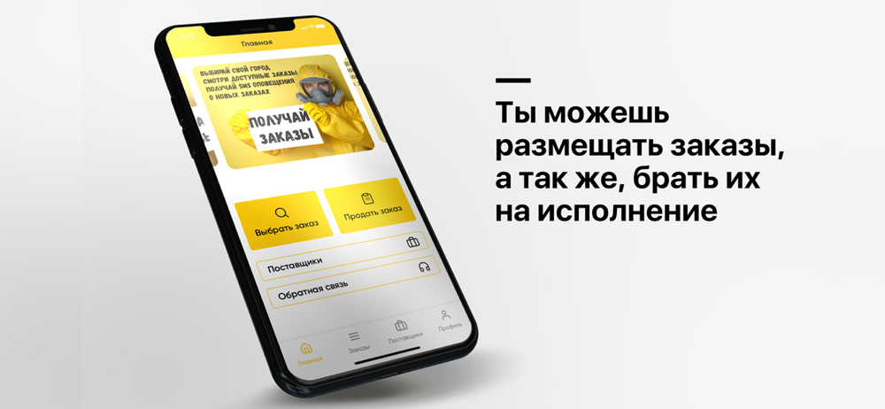 Выполняйте заказы и зарабатывайте. Приложение поможет найти заказ в вашем регионе. Вы можете откликнуться на несколько заказов. Заказчик свяжется с вами и уточнит детали.