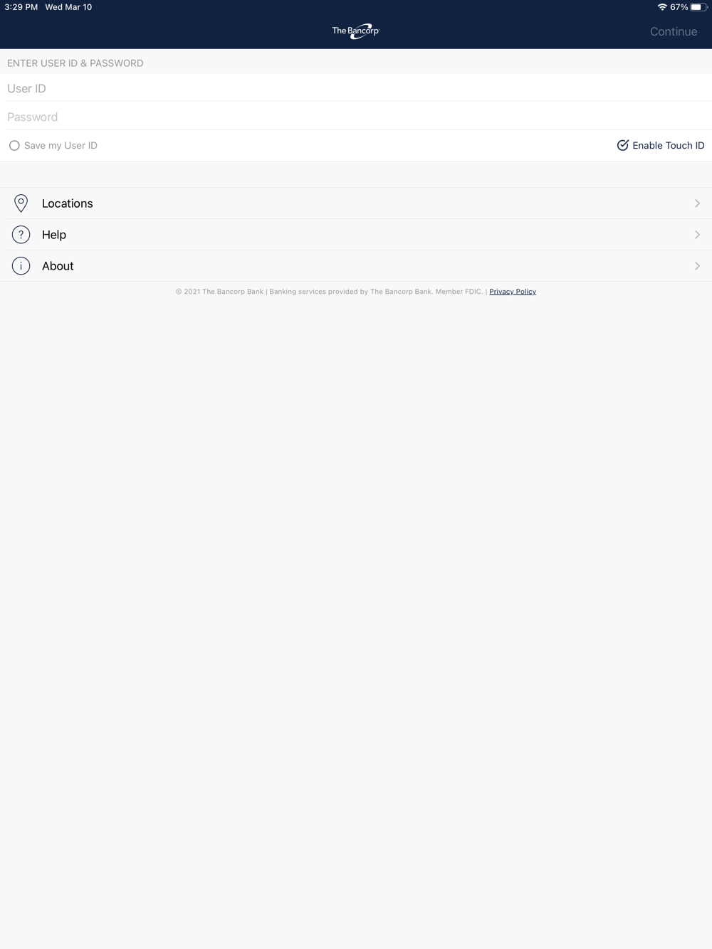 An official mobile banking app of The Bancorp Bank. The FREE Bancorp Solutions Mobile Bank app gives registered online banking customers secure access to their bank accounts 24/7—all, at their fingertips, from the convenience of their iPhone®.