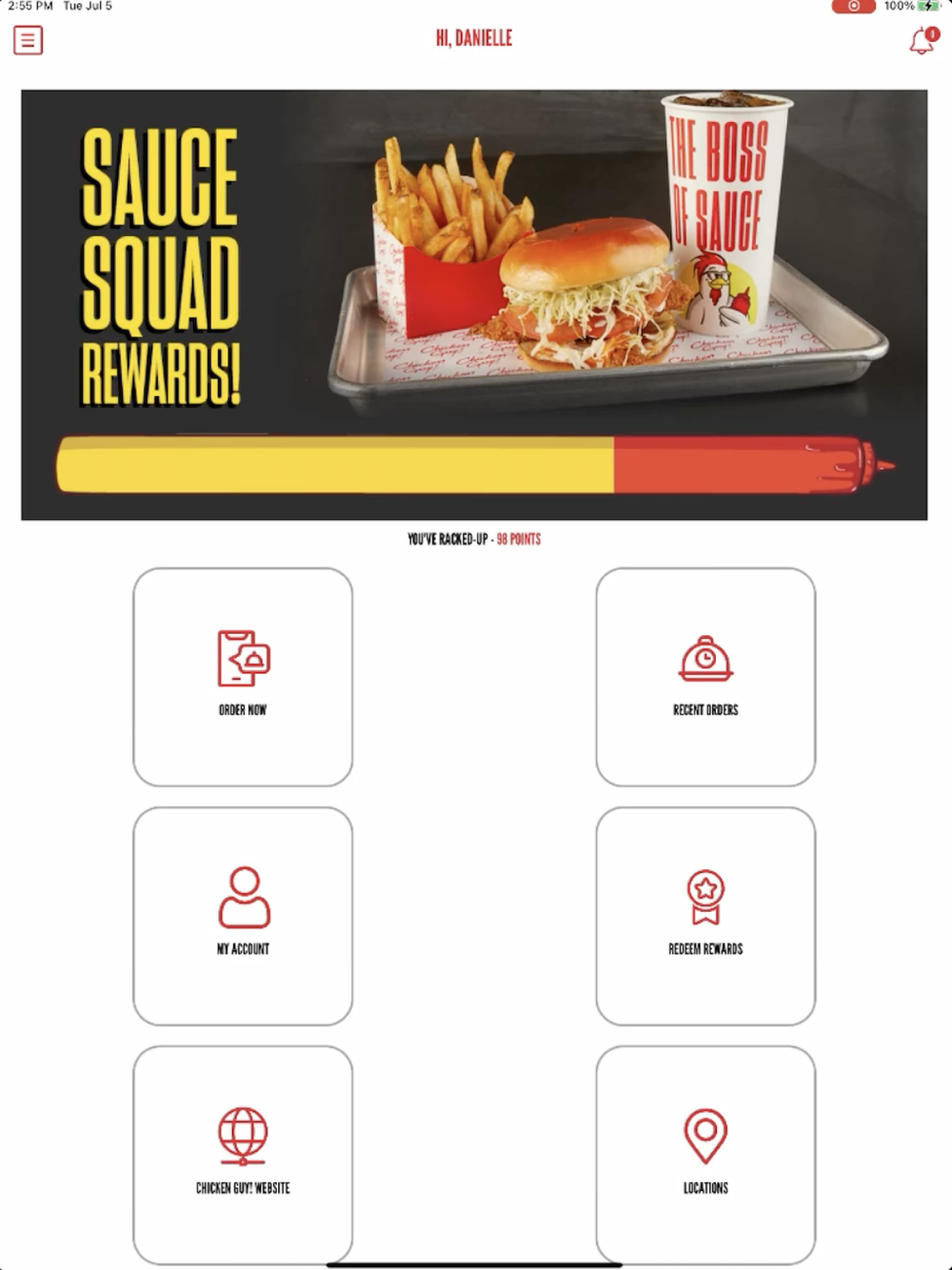 - Sign Up: Use the app to sign up for our Sauce Squad. Sauce Squad is our Chicken Guy!® inner circle. You can earn points on each purchase to earn rewards. Use qualifying points for small rewards or save them for bigger rewards!