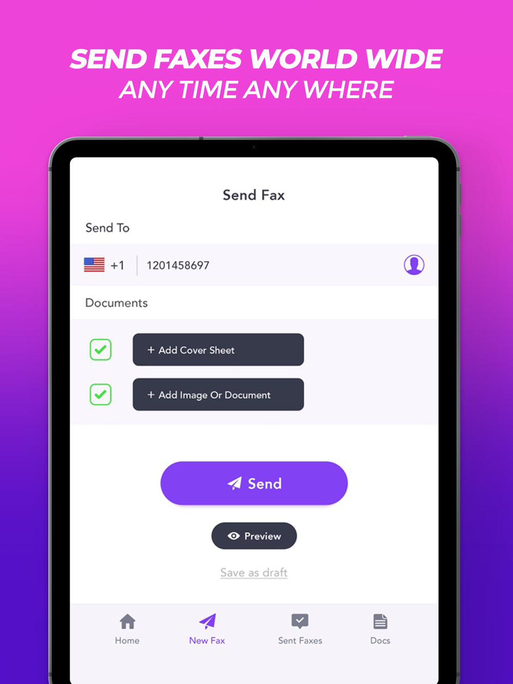 Seriously, no fax machine required! Send ANY document anywhere in the world in just a few taps.