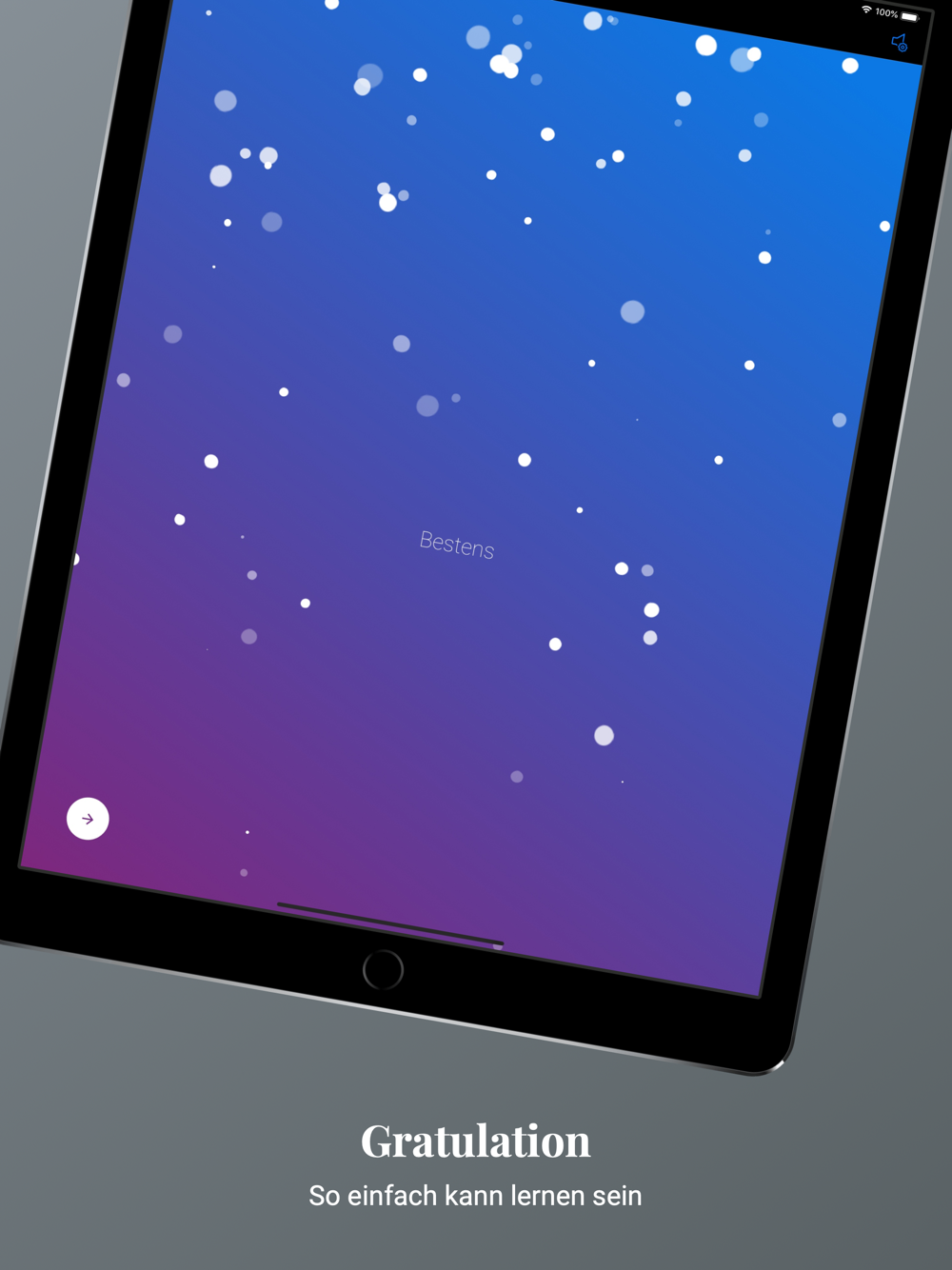 Schließe deine Übung in deiner eigenen Lerngeschwindigkeit ab und lass dich von unserer Methode faszinieren. Du hast noch nie so gut und intensiv die Vokabeln gelernt.