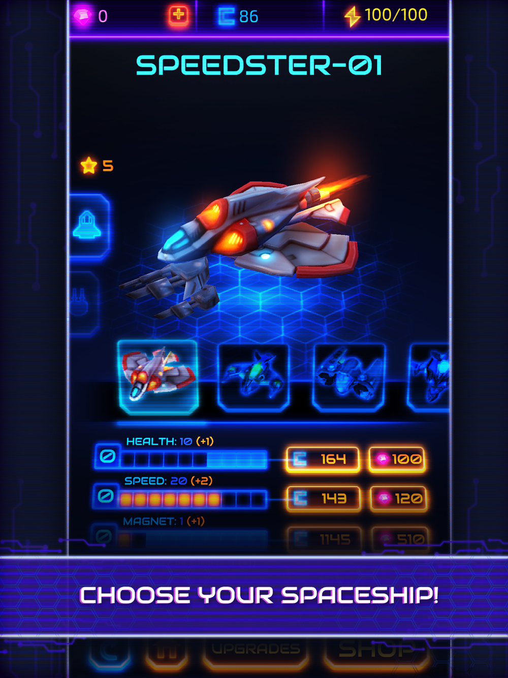 Collect galaxy coins to upgrade or get new weapons.