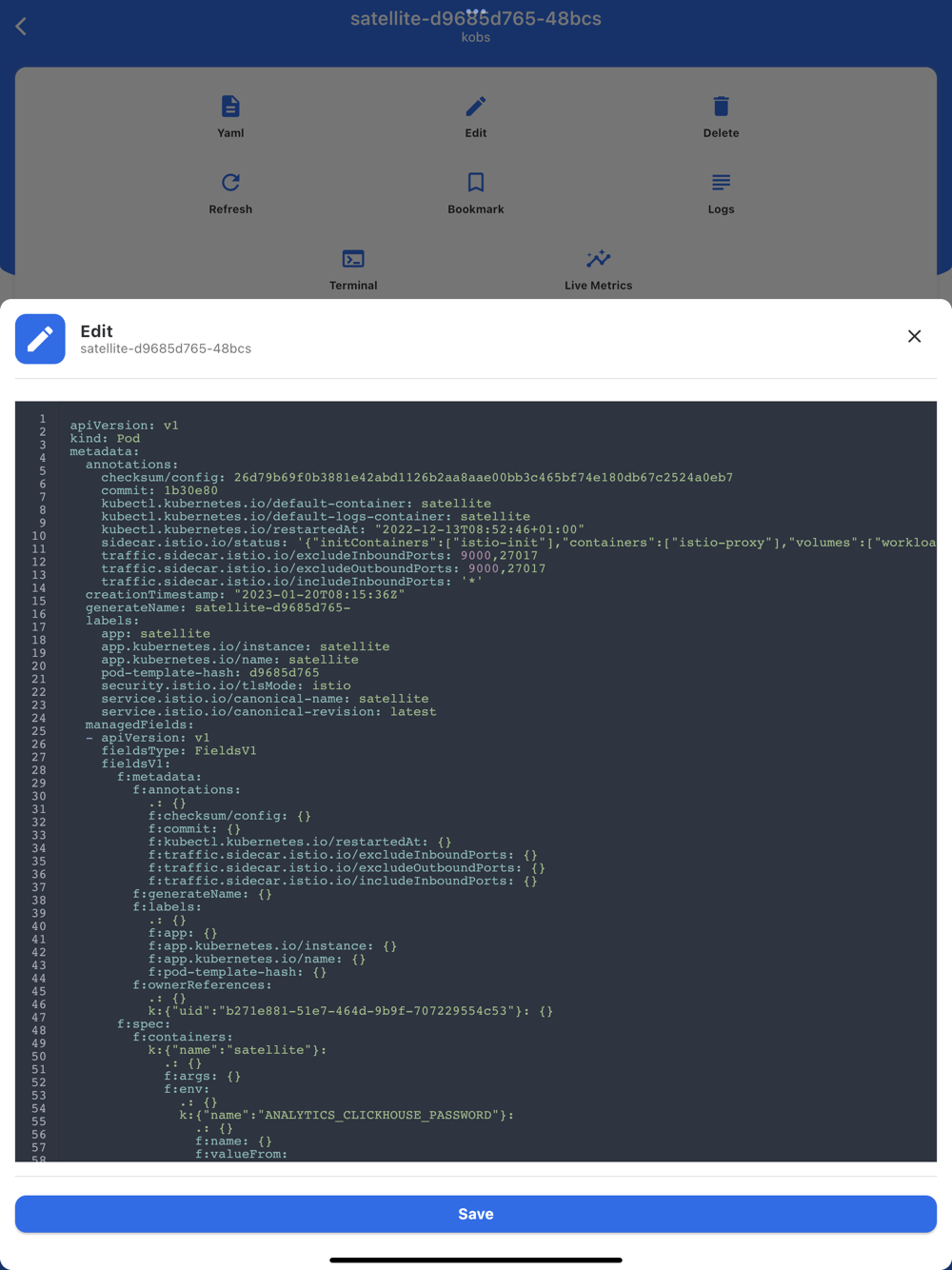 - Modify Resources: Edit and delete all available resources or scale your Deployments, StatefulSets, DaemonSets.