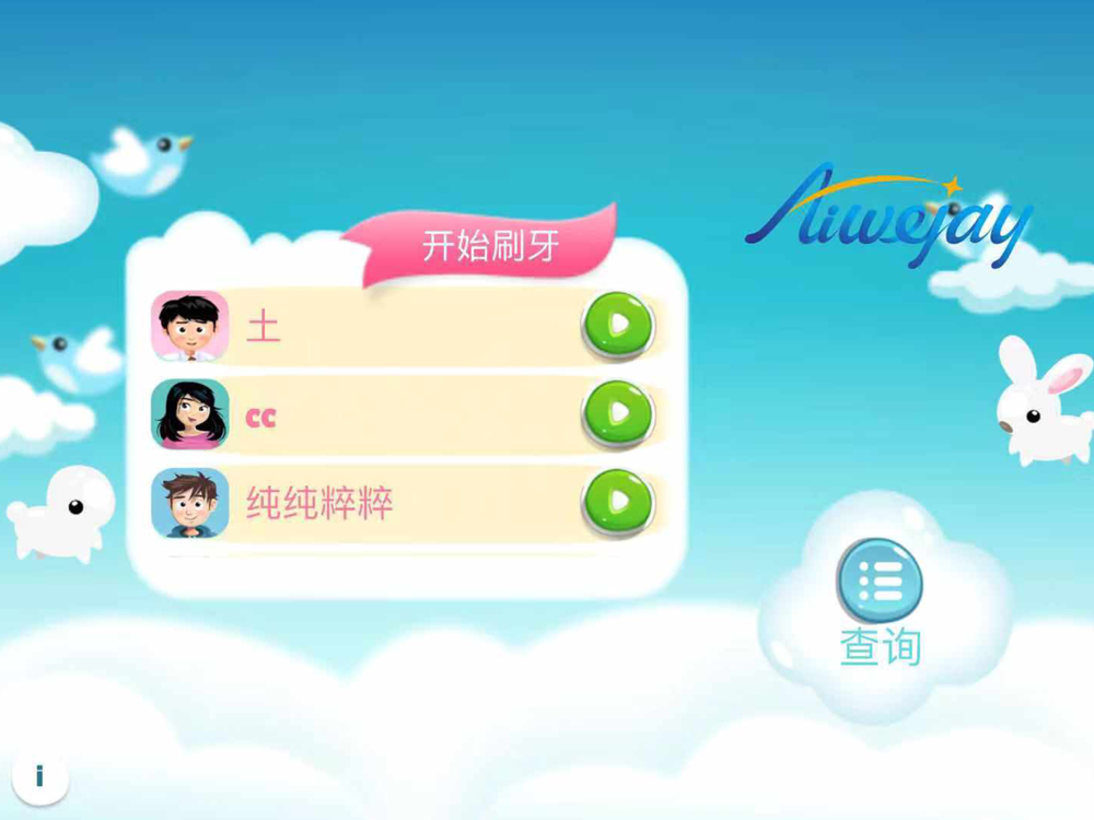 牙宝是一款专门为儿童设计的刷牙游戏。伟杰智能牙刷可以通过体态感知技术把牙刷变成有趣的打怪游戏,吸引小朋友刷牙。怪兽会在牙齿的不同位置出现,小朋友通过控制手中牙刷来打败游戏中虚拟的怪物来达到一定的刷牙效果后得分。父母可以通过游戏结果来查看孩子刷牙效果。