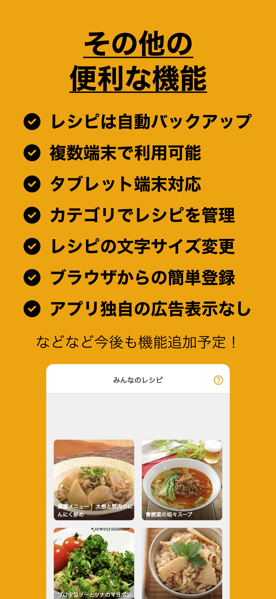・レシピにカテゴリを設定して見つけやすくすることができます
