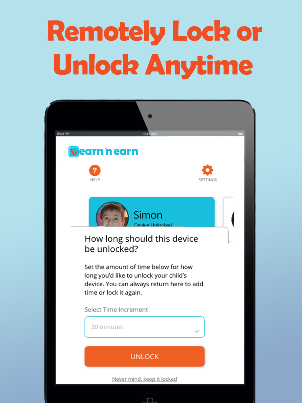 Learn 'n earn is FREE TO TRY. Immediately gain access to all the features of the app, except the ability to Manually Lock and Unlock children's devices outside of the set learning parameters