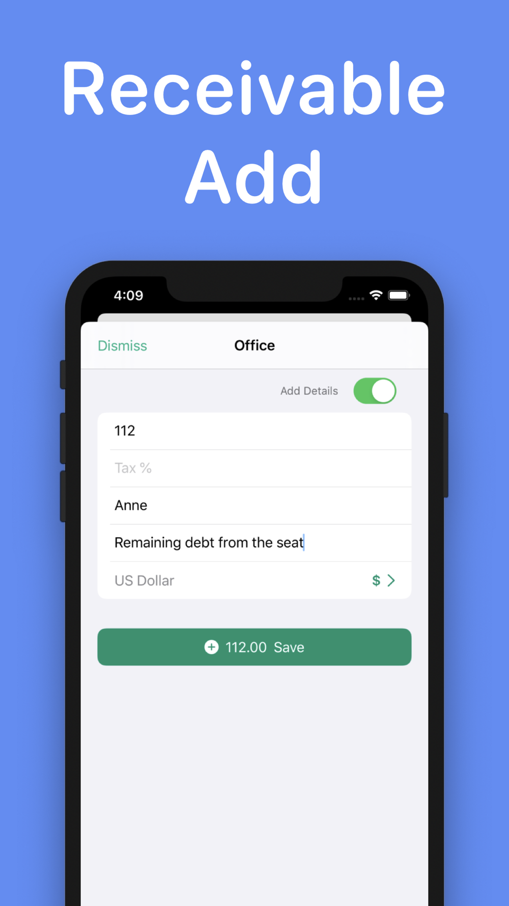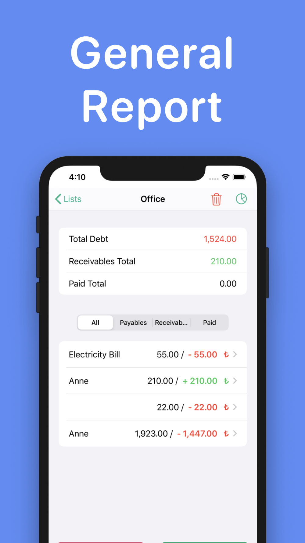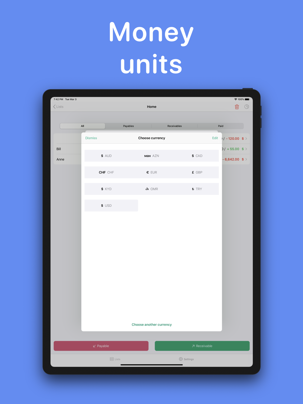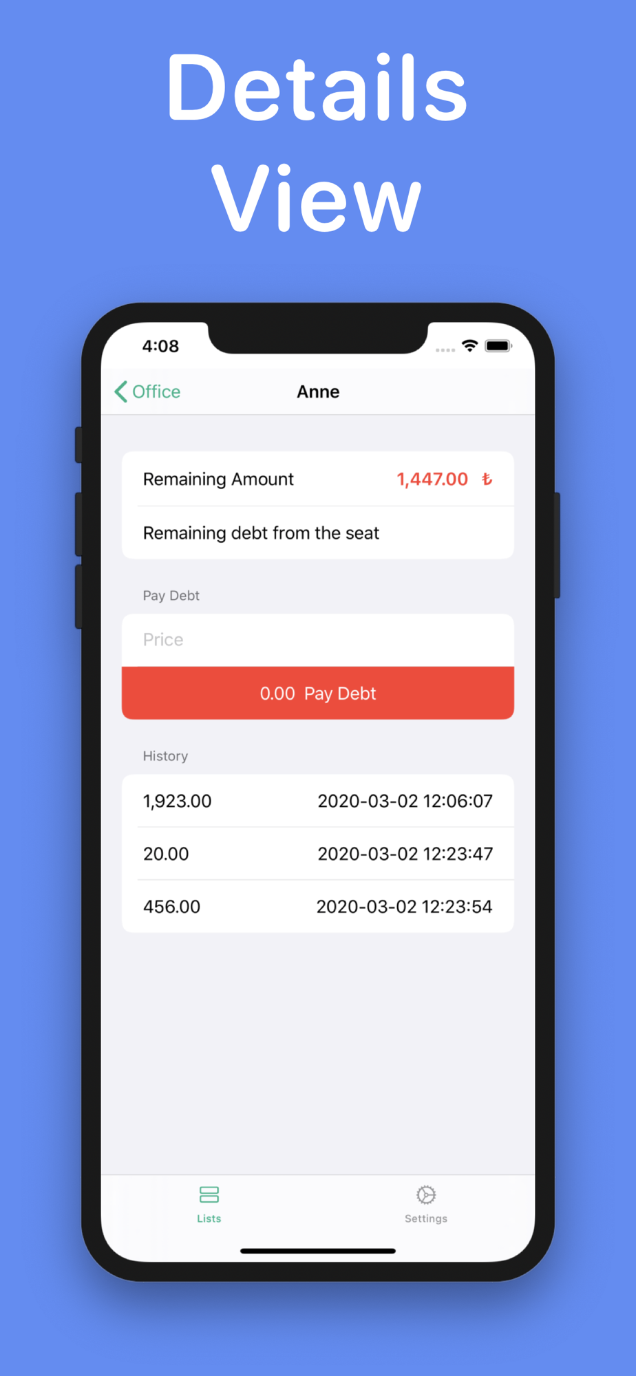 It is a great ‘lists app’ designed for individuals and businesses to follow/keep track of receivables and payables.