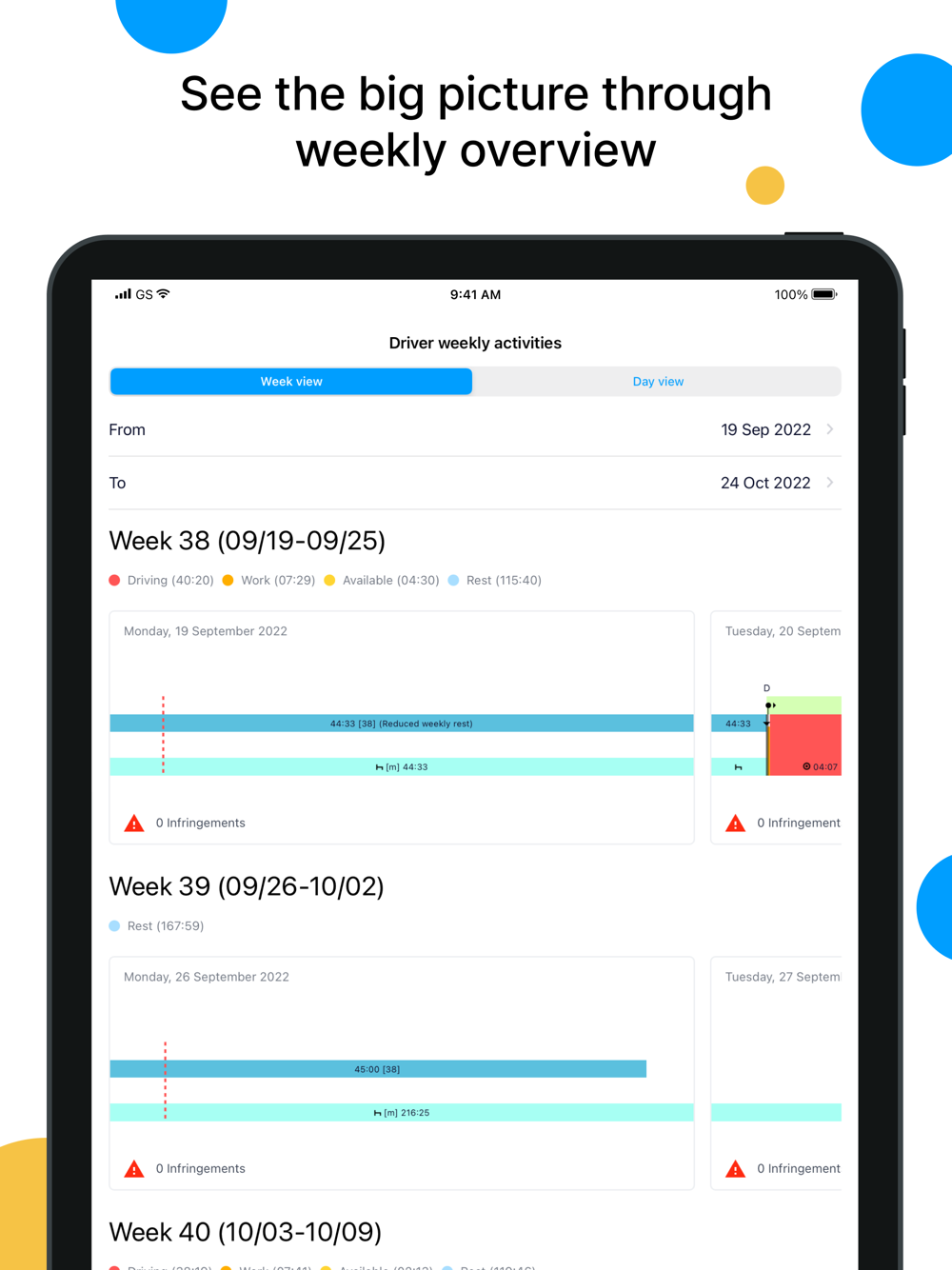 - See remaining drive and rest times - after uploading your data, they’re calculated automatically;