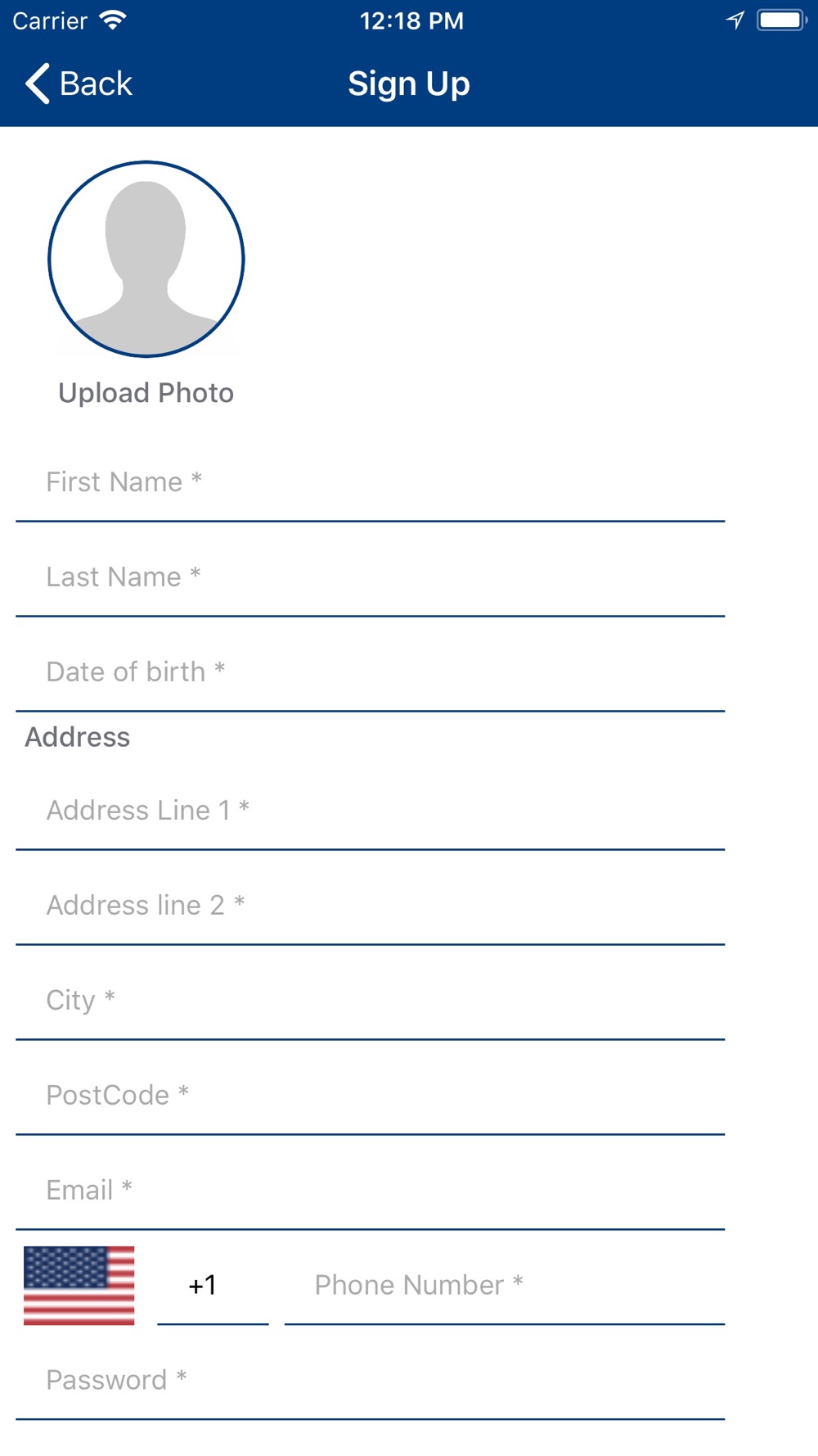 For this application to operate correctly it is necessary to create and register a new account. To activate the account a unique code will be sent via SMS to your mobile phone number.