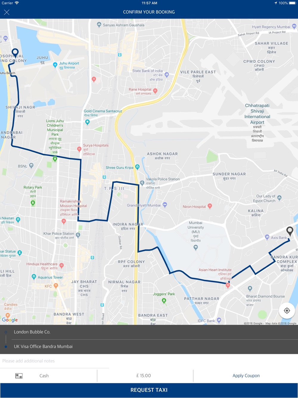 • Message to the driver: Text a driver through the app to inform him of any specific requirements you may have i.e. heavy luggage, children’s seat, disabled passenger.
