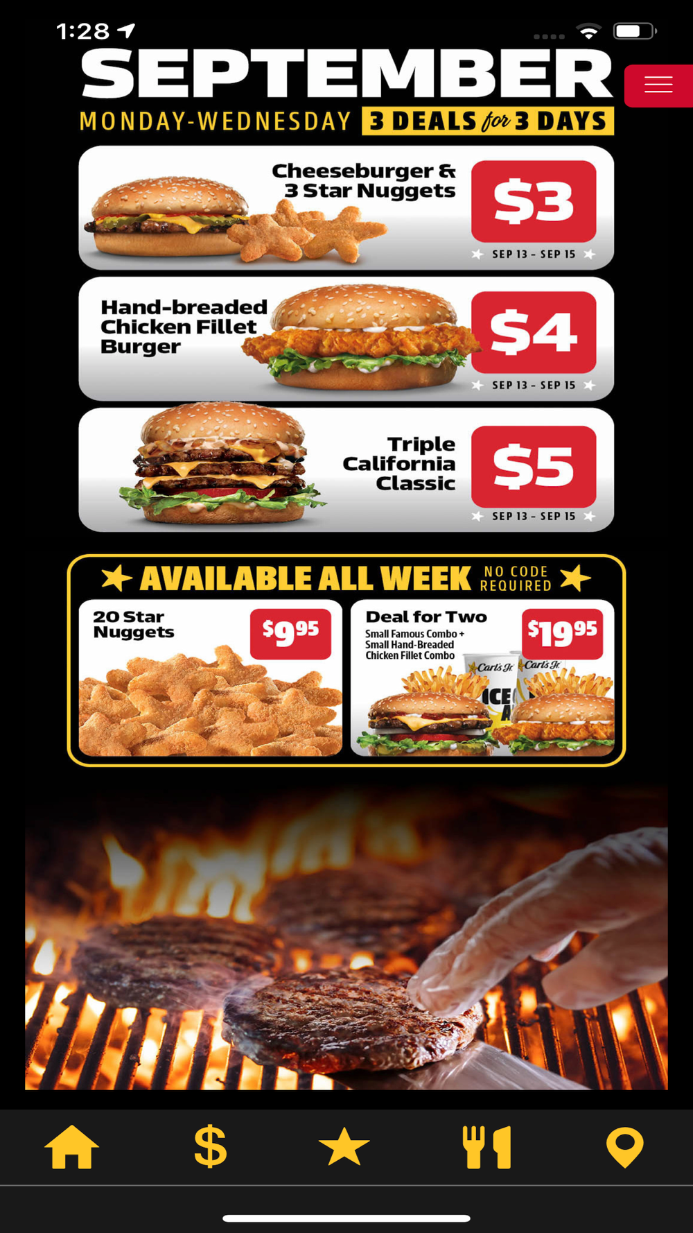 Experience the Carl's Jr. difference - burgers made fresh to order, 100% chargrilled Angus beef, hand-breaded chicken and all-you-can-drink beverage bar! Download our app to get exclusive deals and special offers!
