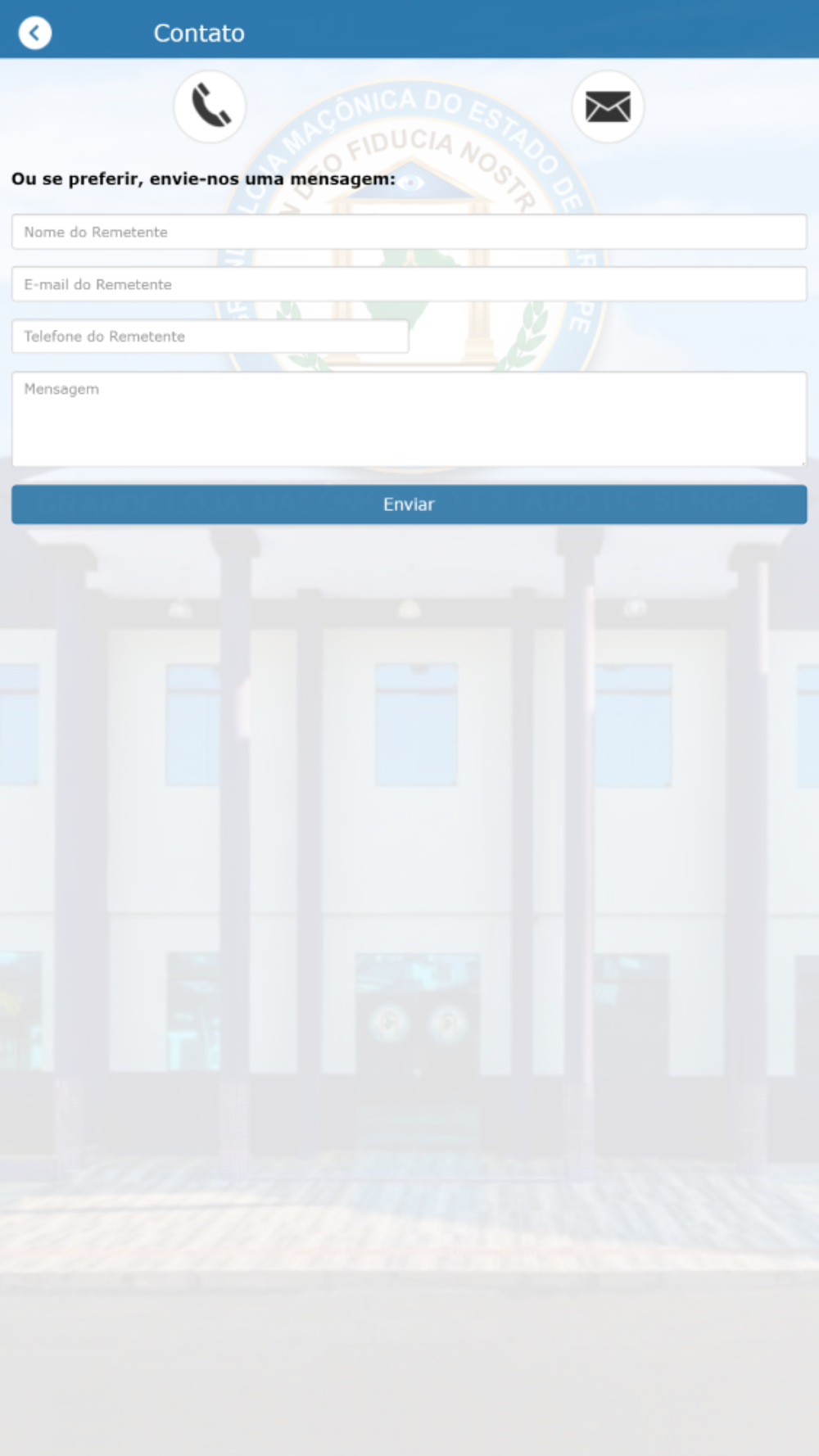 8) Através do menu "Contato" o usuário tem acesso à informações de contato do "GLMESE".