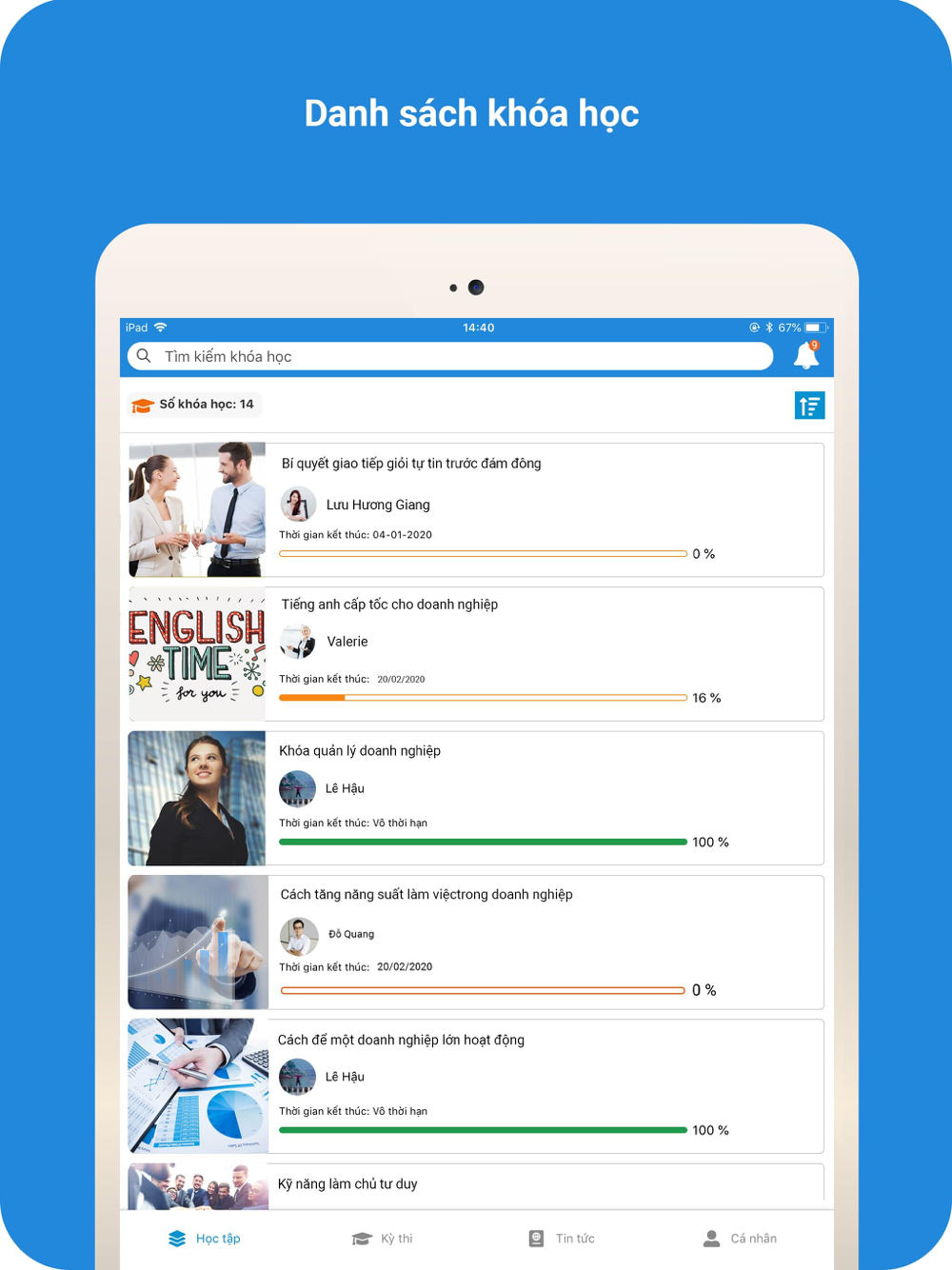 Ứng dụng hỗ trợ bạn cung cấp các khóa học tuyệt vời cho nhân viên, đối tác, khách hàng hoặc sinh viên của bạn một cách dễ dàng.