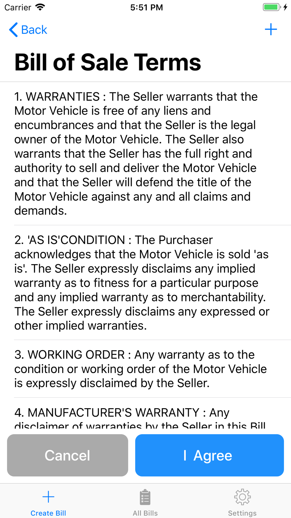 Easiest and quickest way to create bill of sale.