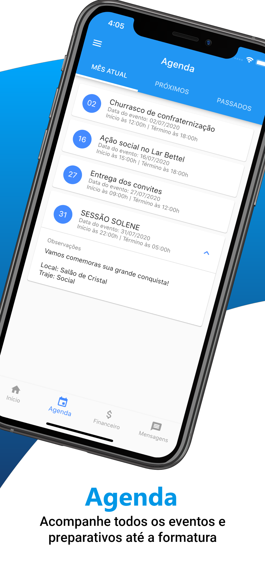 Aplicativo destinado exclusivamente aos clientes da Milenium Formaturas que desejam acompanhar os eventos, consultar sua situação financeira e entrar em contato com a empresa.