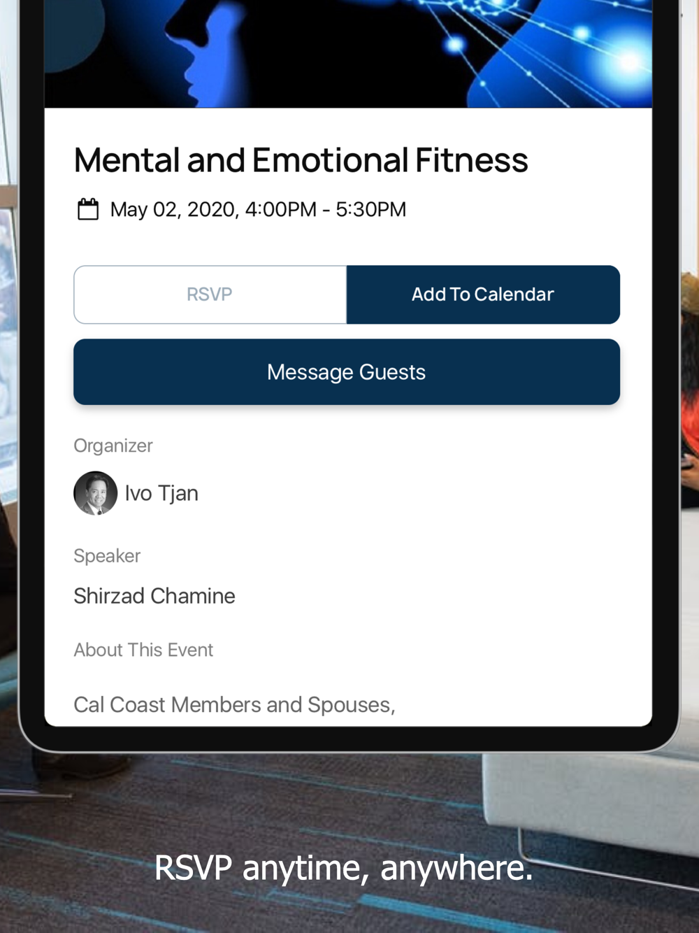 This is the official mobile app for the YPO Cal Coast Chapter.
