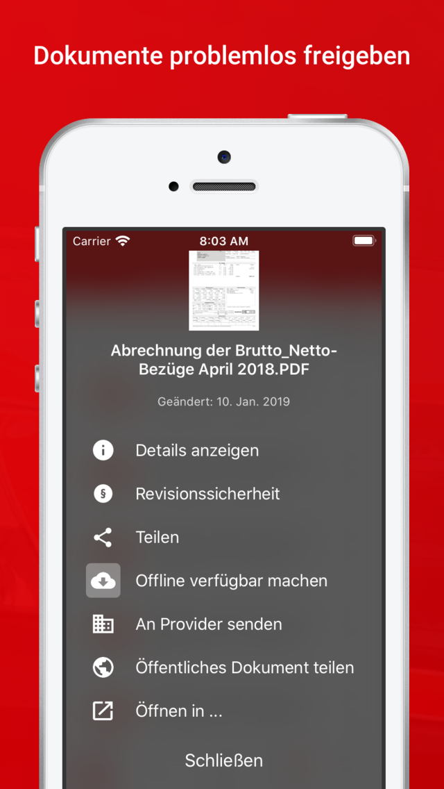• Jedes Dokument ist grundsätzlich verschlüsselt (AES 256-Bit)