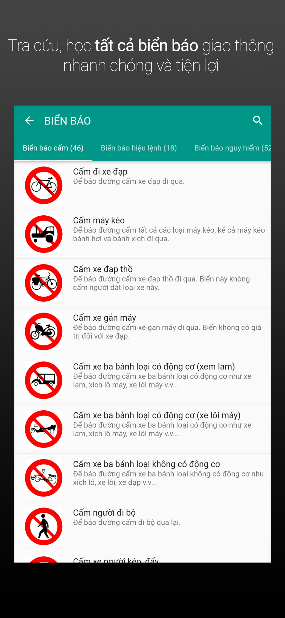 Nhng im ni bt ca ng dng: - n tp nhanh v lm trc nghim trong qu trnh hc. - Thi th tt c cc trong b chnh thc. - Ghi nh li cc cu quan trng, kh nh. - Lm li cc cu hay sai. - Khng hin th qung co popup ton mn hnh iu m gy s bt tin v kh chu khi s dng . Ngoi vic gip n thi hiu qu, ng dng cn gip bn: - Tra cu nhanh lut v mc pht giao thng mi nht. - Tra cu tt c cc loi bin bo giao thng. - Bit r tt c ngha ca n cnh bo trn tp l. - Tng hp nhng kinh nghim li xe cn thit cho li mi.