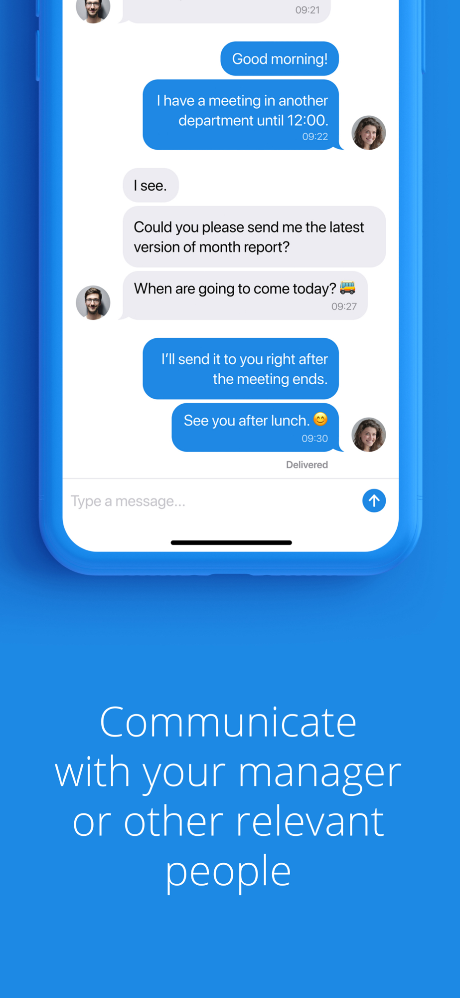 Stay connected with your manager and other contacts using the in-app messaging module. Seamlessly communicate within the app for effective work coordination.