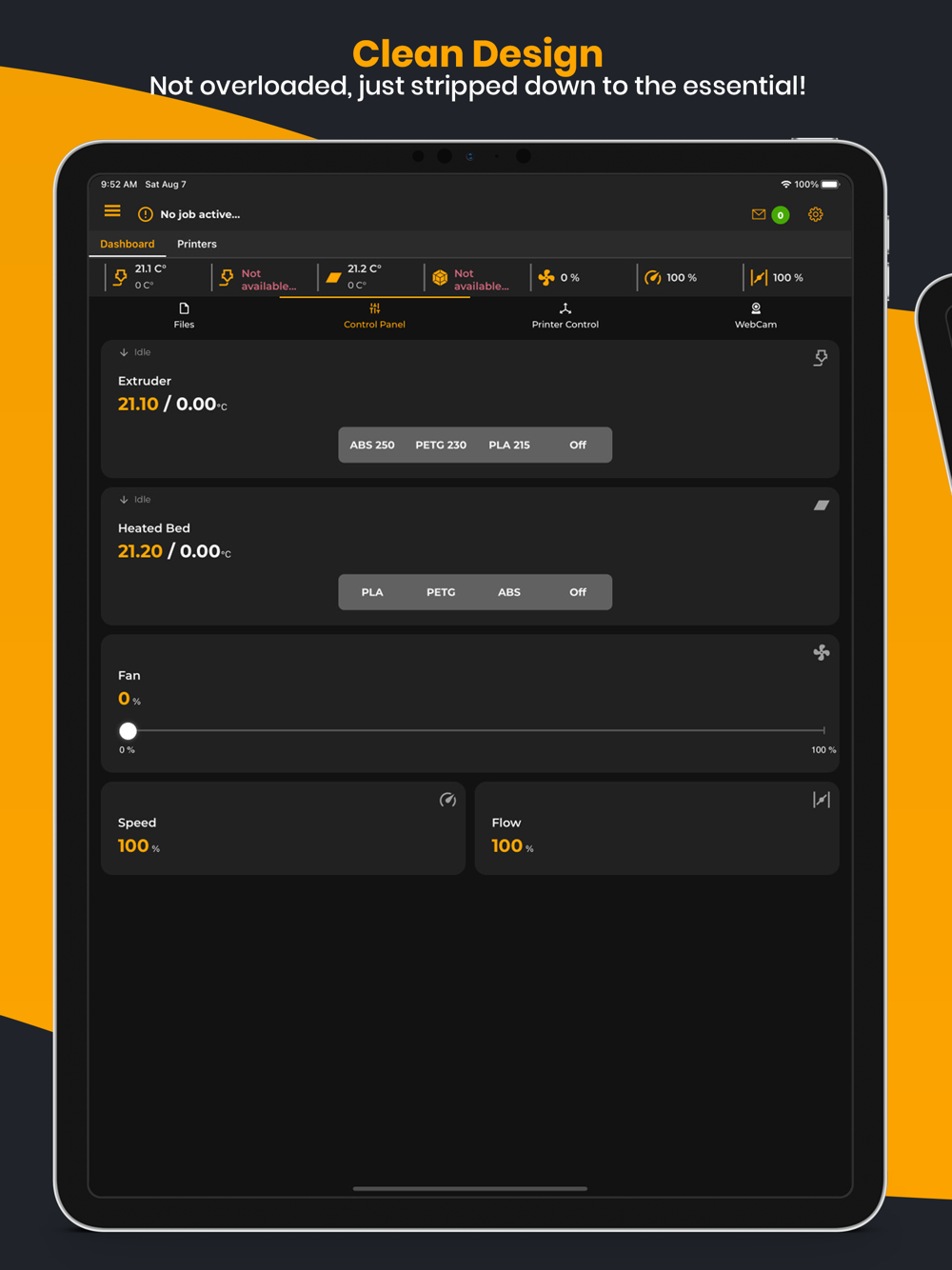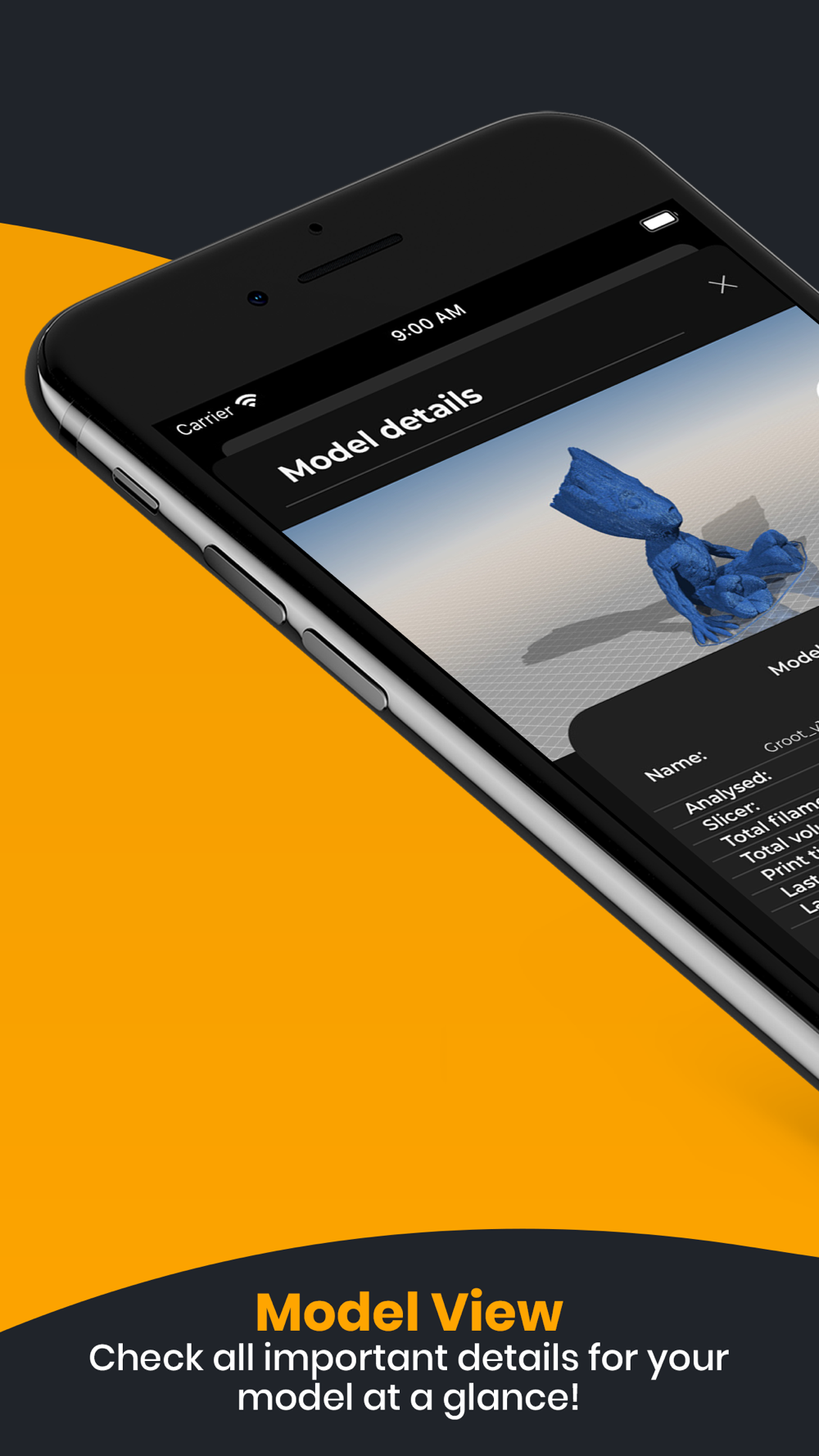 - Manage your models and print, pause or stop just with one click
