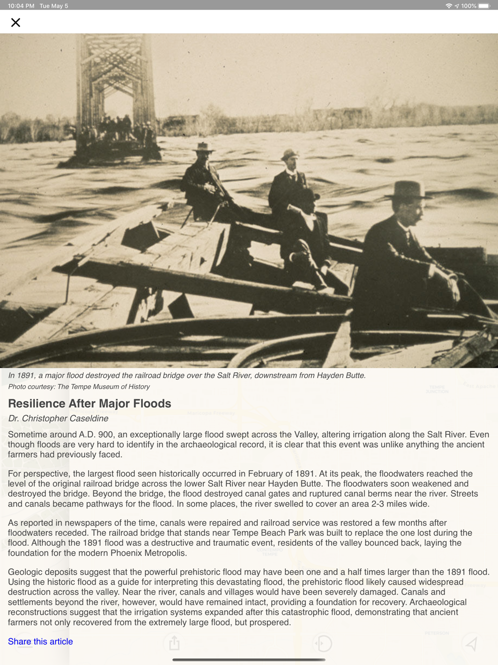 A Deeper Map is a public art project that takes the form of a map-based mobile app. The project allows current residents of the lower Salt River Valley (home of today’s metro Phoenix area) to appreciate the ancient legacy that inspired our modern desert metropolis.