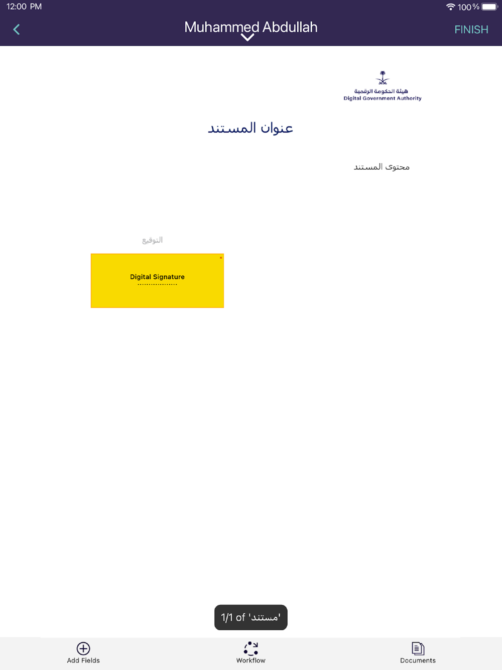Digital Signature app for the Government of Saudi Arabia under the supervision of DGA (Digital Government Authority).