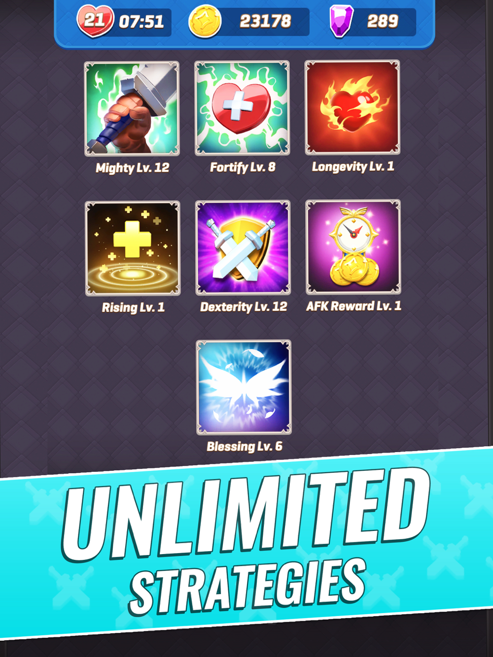 • UPGRADE unique skills - Level-up and combine your skill to get through the dungeons.