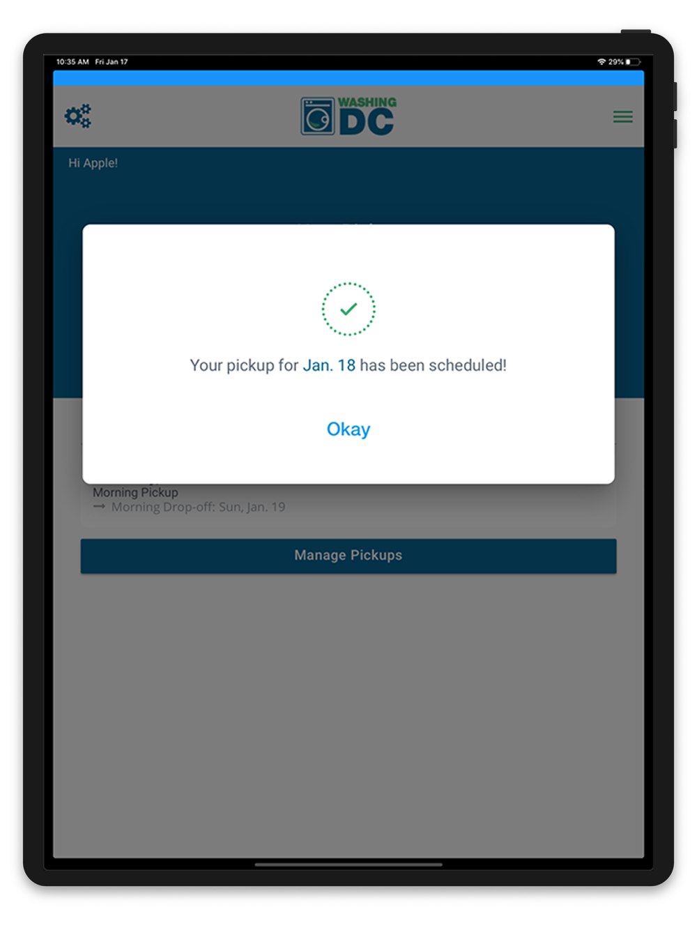 Regardless of whether you’re on the weekly or “by request” plan, we’ll send a reminder the night before your pickup – and once again when the driver’s on the way – so you don’t forget to leave your clothes out