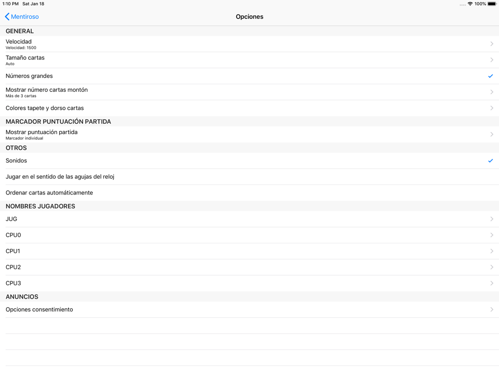 - Juega al Mentiroso contra varias CPU (de 3 a 5 jugadores)
