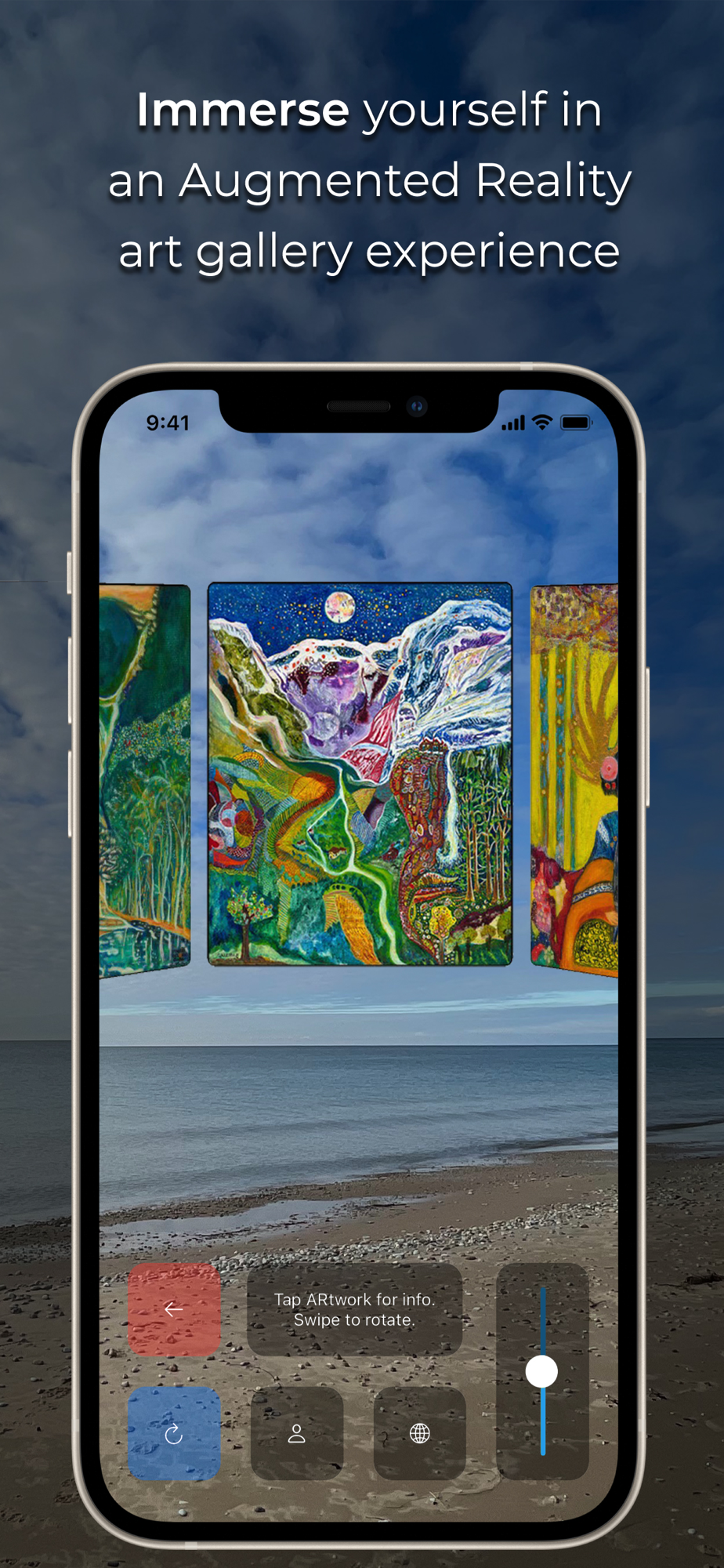 When you enter each exhibit, you are immediately surrounded by paintings to explore and walk around. By tapping any of the paintings, you can get more information about them and even inquire about contacting the artist. The Kleiber AR Gallery brings the experience of an in-person art gallery directly to you.