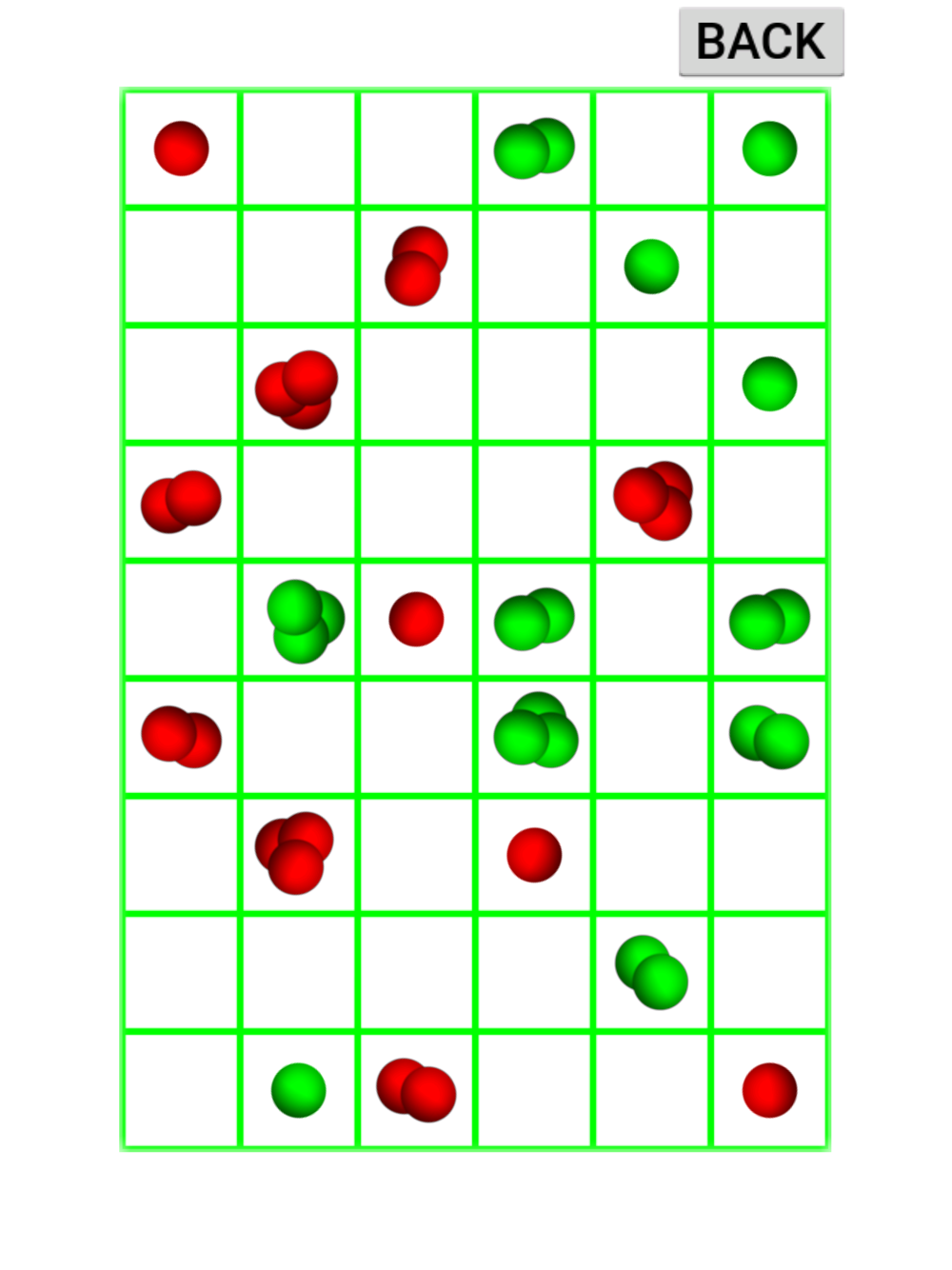 Players take it in turns to place their orbs in a cell. Once a cell has reached critical mass the orbs explode into the surrounding cells adding an extra orb and claiming the cell for the player. A player may only place their orbs in a blank cell or a cell that contains orbs of their own color. As soon as a player loses all their orbs they are out of the game.