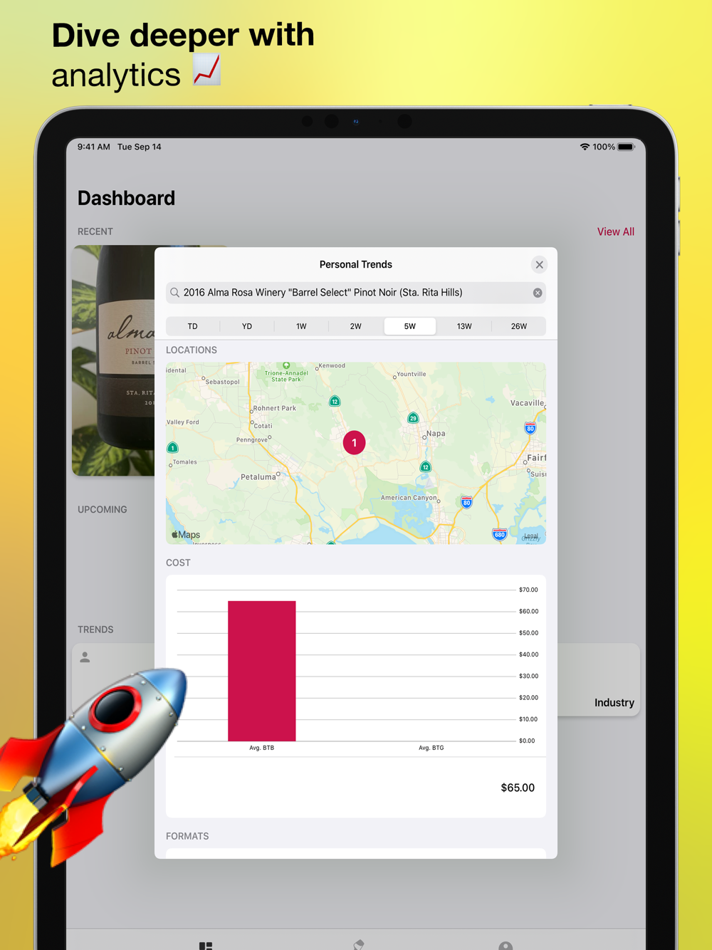- Wine tasting analytics: understand what you're tasting over time, what you like, what you're spending, and more