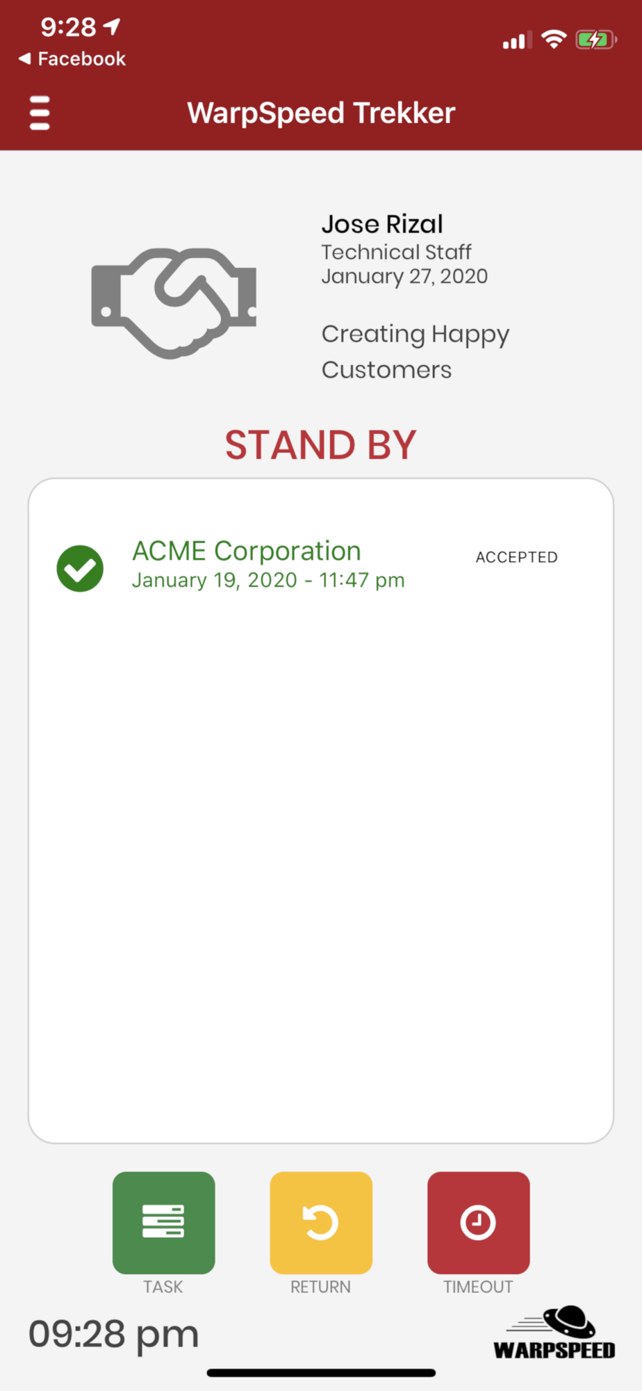 REAL-TIME GPS TRACKING. WarpSpeed enables Field Staff the ability to Time In/Out without reporting to the office and receives tasks/dispatch from Managers. It provides Managers critical job-related information such as real-time location, status and personnel info while employees are travelling and working on the field. The Command Center Map Tracker allows Managers to visually locate any of their staff on a map that gives timely information.