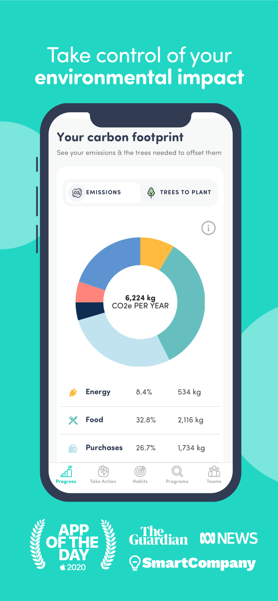 Stay motivated on your journey to net zero carbon emissions. Through our gamified programs and our habit tracking tool, you’ll build your confidence & skills to take control of your carbon footprint. Be rewarded for taking climate action & see your impact in real time. Our Teams feature helps you to achieve your sustainability goals & build your momentum by completing weekly challenges with your friends, family & workmates.