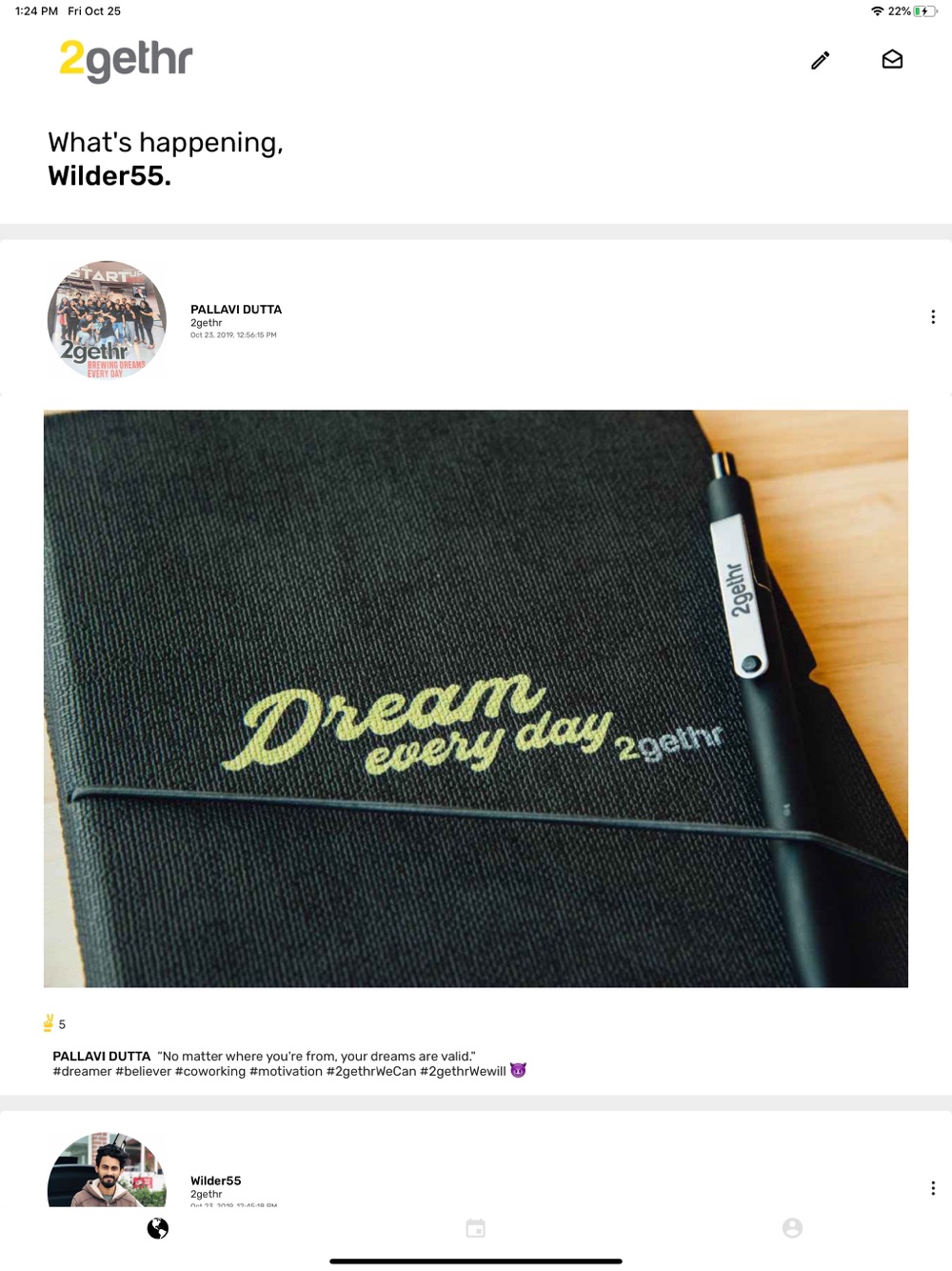 An app by 2gethr which lets you manage your visitors, bookings and socialize with people around you. You can share posts with your colleagues chat with them.