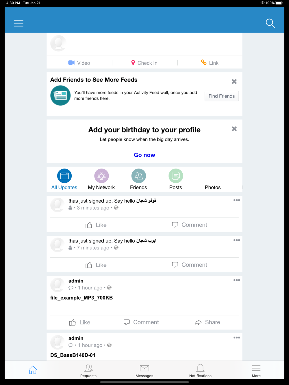- Create Groups, Publish News, Share Videos, Manage Photo Gallery, Post your Classified ads.