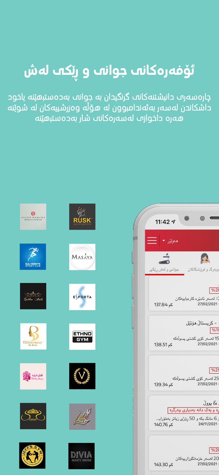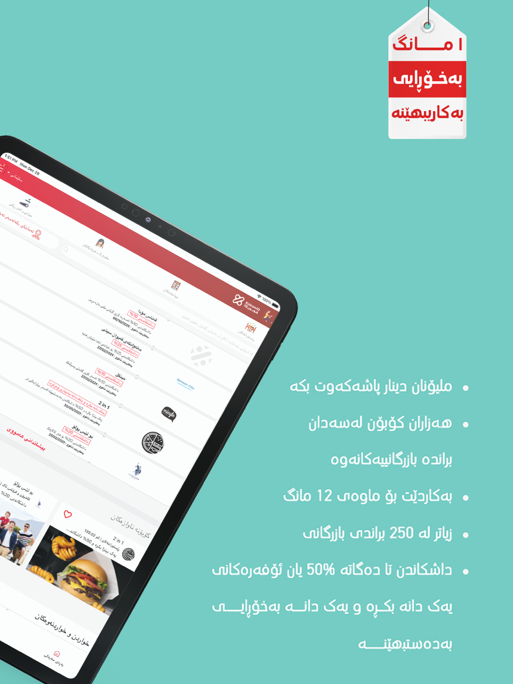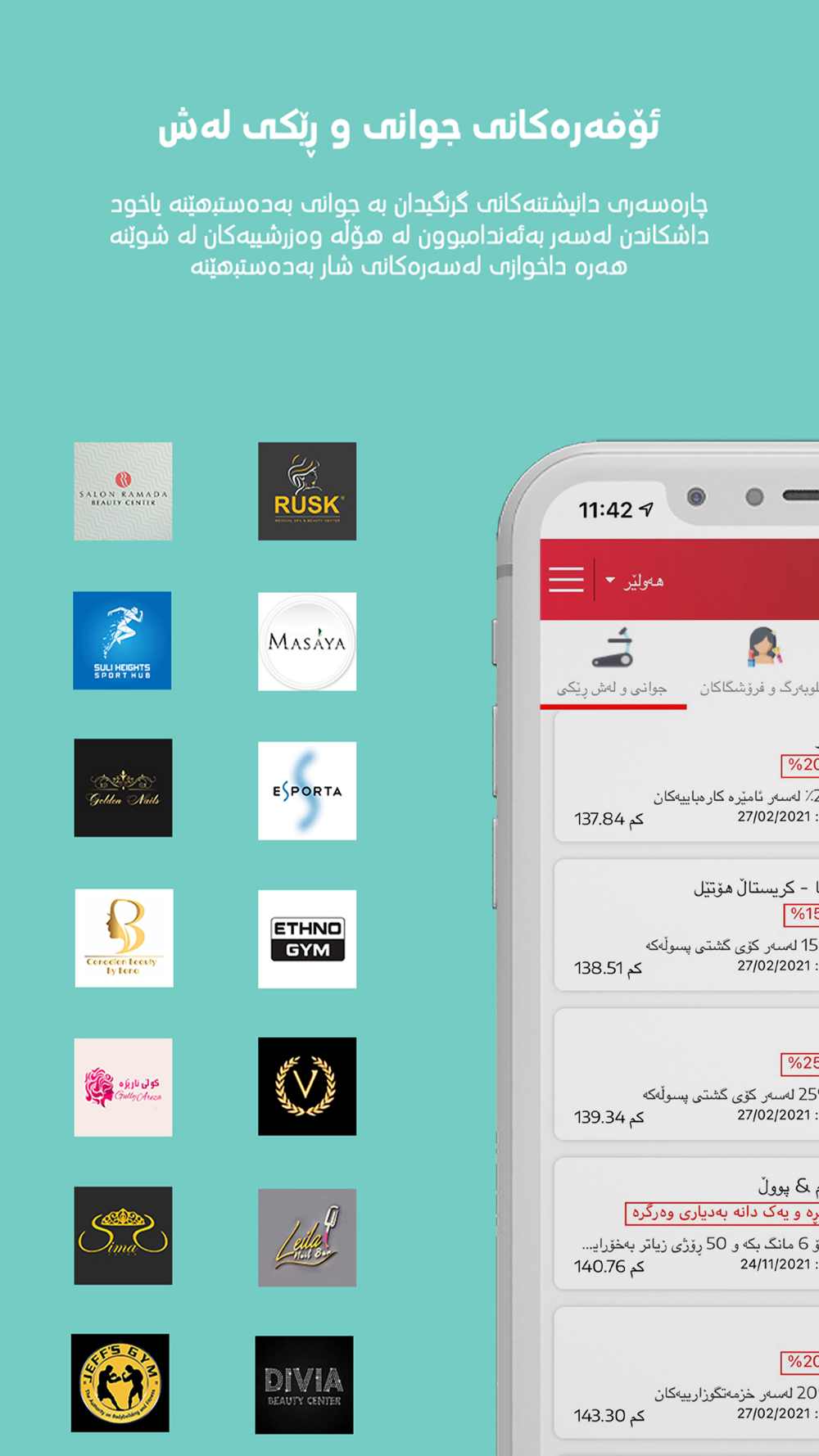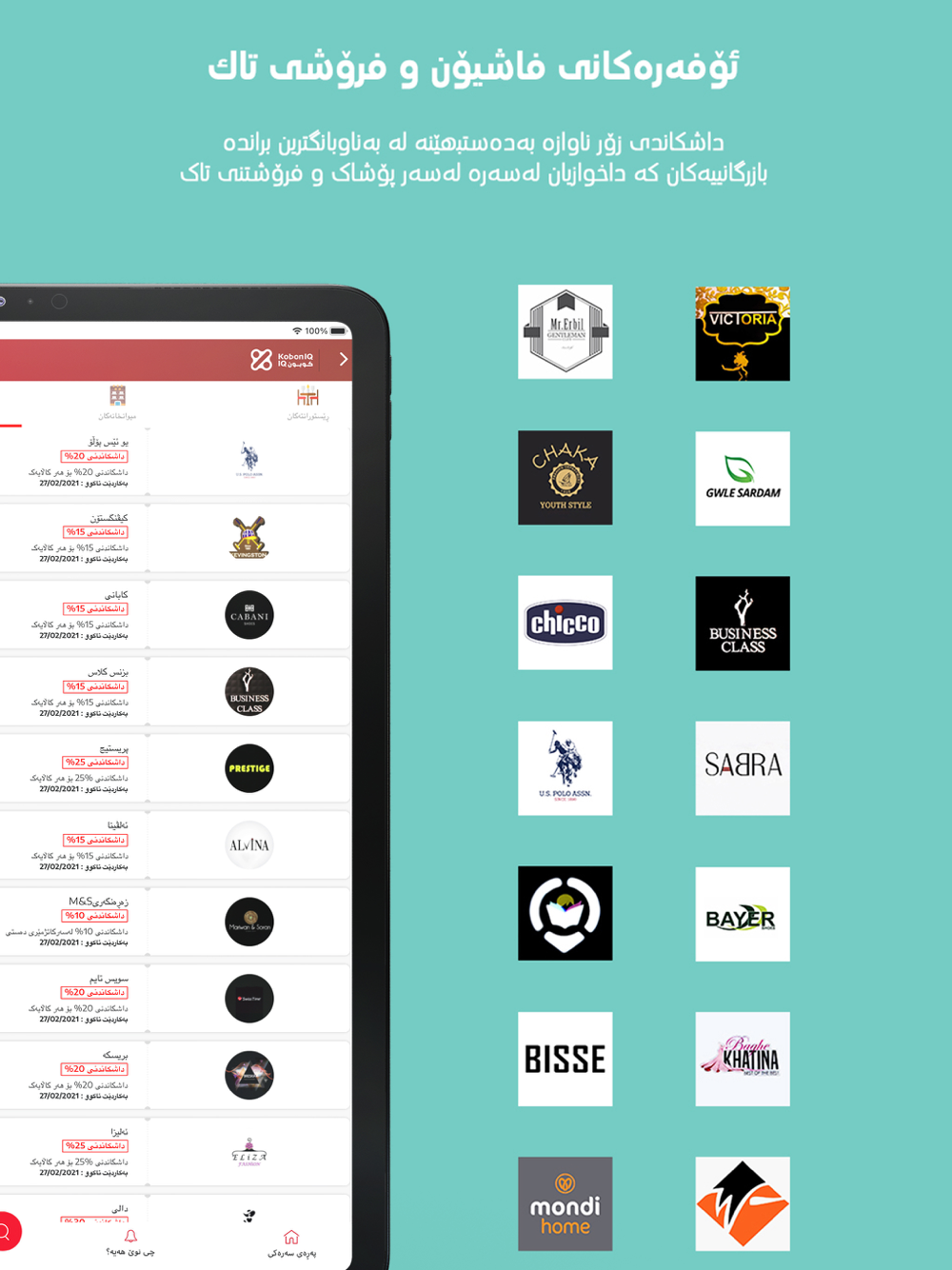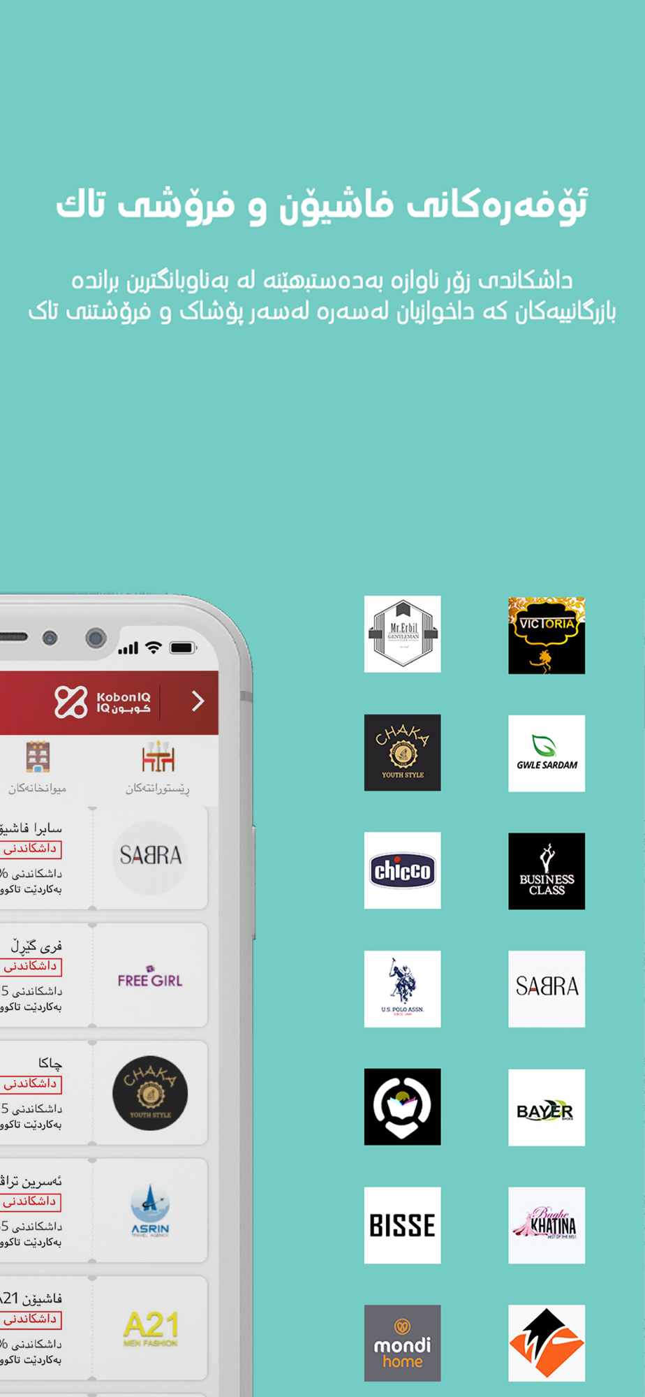 KobonIQ یەکەم و تەنها ئەپڵیکەیشنە لە عێراق. تیمێکی پسپۆڕمان هەڵدەستن دەستنیشانکردنی بەناوبانگترین و باشترین شوێنە بازرگانییەکان لە شارەکان و دانوستانیان لەگەڵ دەکەن بۆ بەدەستهێنانی زۆرترین مامەڵەی ئابووری و تایبەت - تەنها بۆ بەشداربووانی kobonIQ.