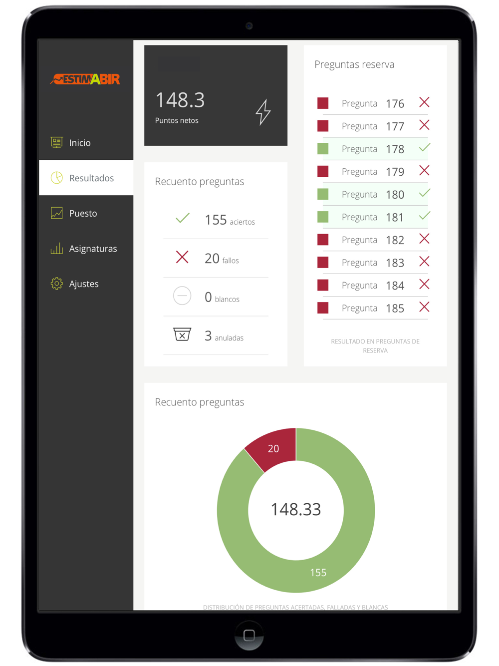 Estima BIR es el servicio GRATUITO de corrección del examen BIR y estimación de puesto de ACADEMIA AMIR. Puedes introducir tu examen de una manera intuitiva desde tu iPhone y comprobar tu evolución en tiempo real.